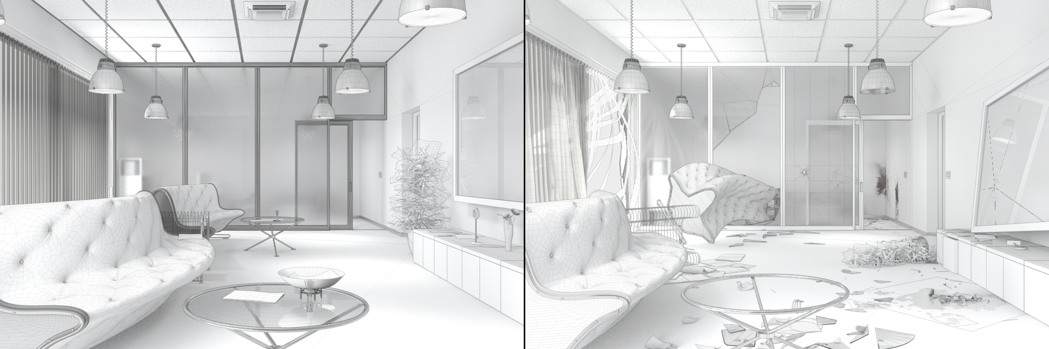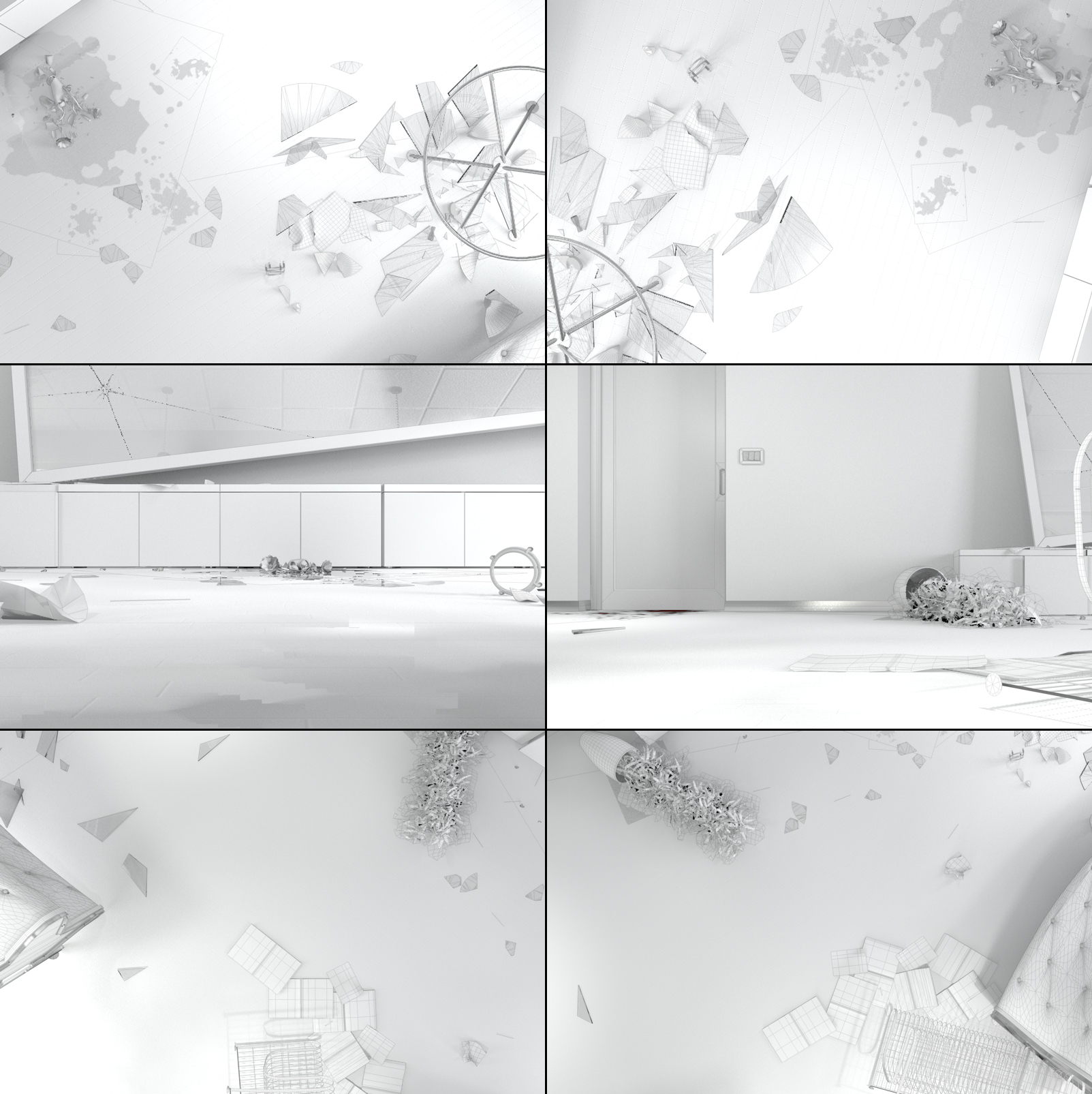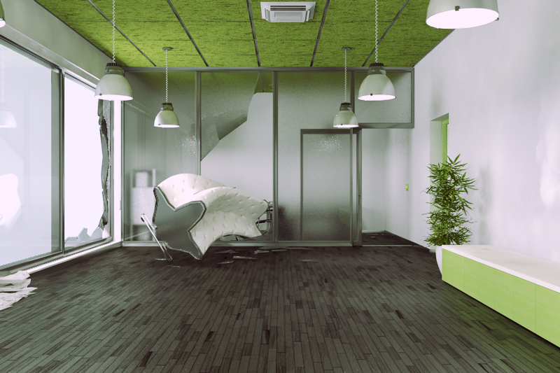 di fatto la nuova scena sarà il risultato del passaggio di alcuni loschi figuri che sono penetrati nell'edificio e hanno messo a soqquadro tutto.