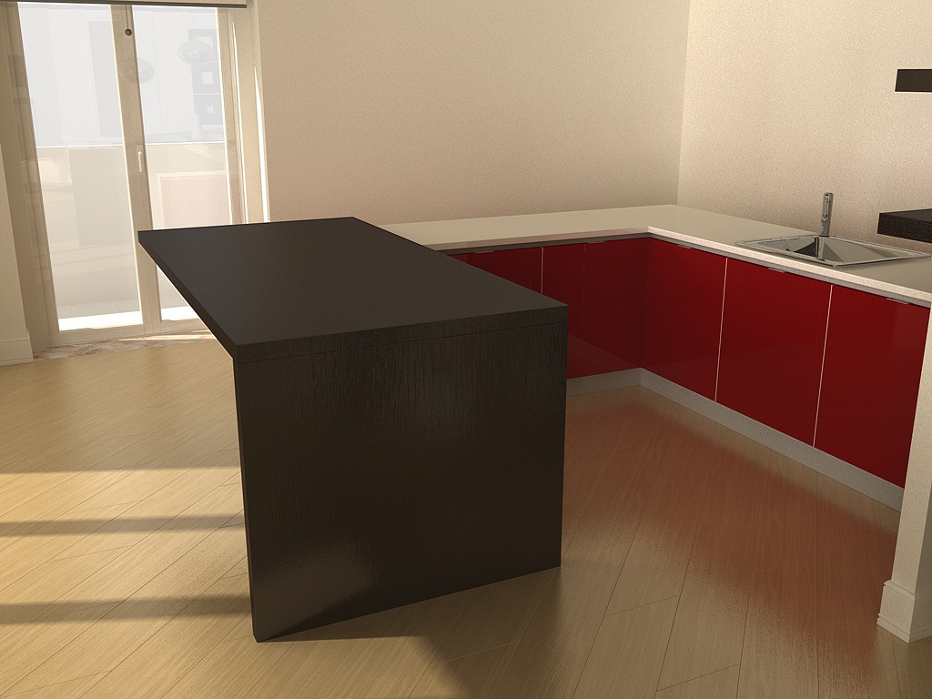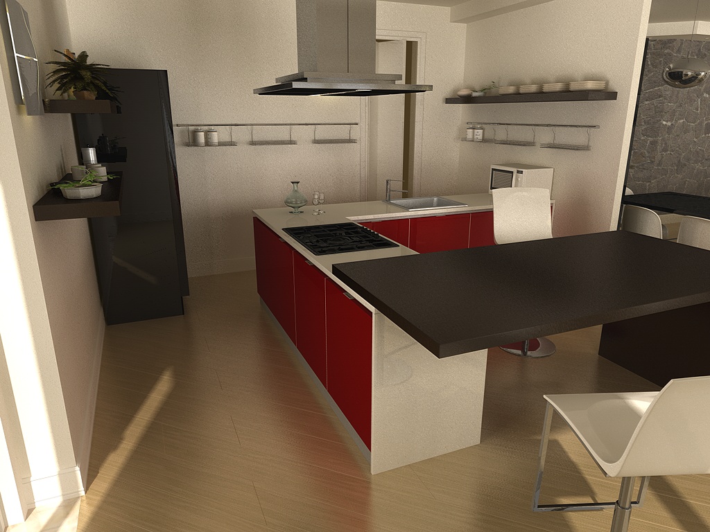 Una domanda dal punto di vista della composizione, un cucina ad isola/penisola del genere, così come l'hai disposta, credo sia un po' improbabile.