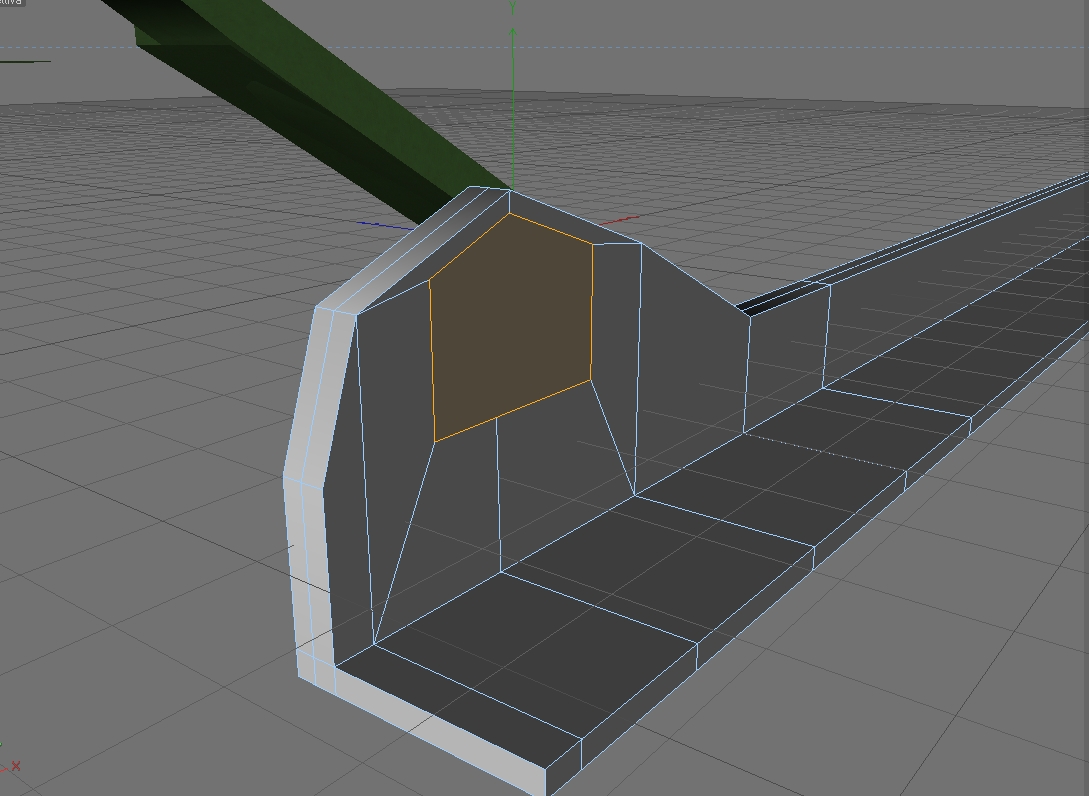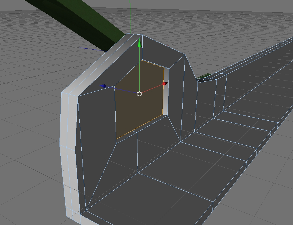 Vai sul lato esterno dello scivolo e rendilo identico a quello interno. Hai fatto dei tagli che partono dai bordi esterni e vanno verso l'interno - generando il poligono centrale dal quale vuoi far partire il tunnel. Fai lo stesso sulla facciata esterna.