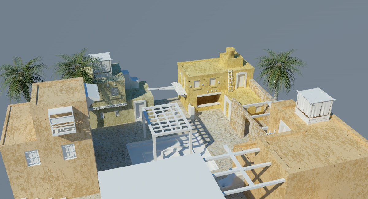 hehehe proprio bravo... grande! magari si può levare qualche poligono dai vari tendaggi, ma non credo che ora come ora ti facciano la differenza....solo una cosa, proverei a seguire il suggerimento di cambiare colore alle varie casette, rimani su quei colori am differenziali, una più rossiccia, un apiù arancione, una bianca....così sembra ancora più viva la piazza....