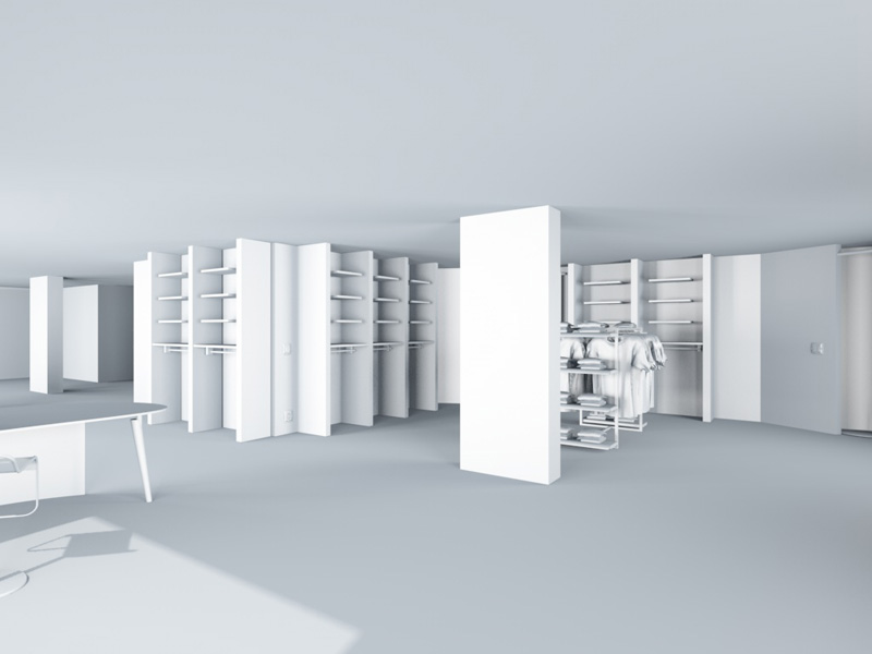 Secondo me c'è qualcosa di sballato nelle proporzioni, il locale sembra basso (sopratutto considerato che è un negozio), poi il gruppo di magliette appese dietro il "pilastro" con lo specchio sono enormi rispetto alle altre , se metti due di queste magliette una sopra l'altra arrivi a toccare il soffitto, il che nella realtà è impossibile.
