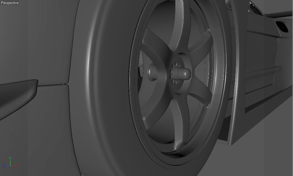 Ora posso concentrarmi sugli interni, che spero comprenderanno anche le parti meccaniche (non tutte ovviamente :) ) come sospensioni e bracci vari; anche se non ho ancora capito (non avendo immagini di referenza chiare) se utilizza anteriormente dei double wishbone orizzontali (la configurazione da F1 per intenderci) o verticali inclinati leggermente.