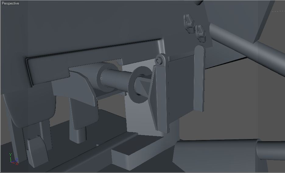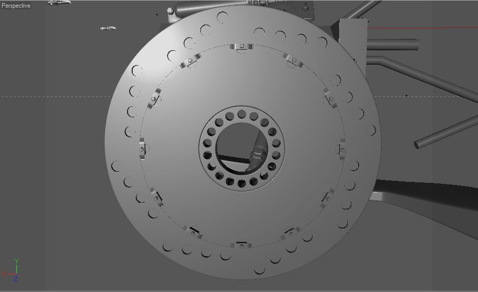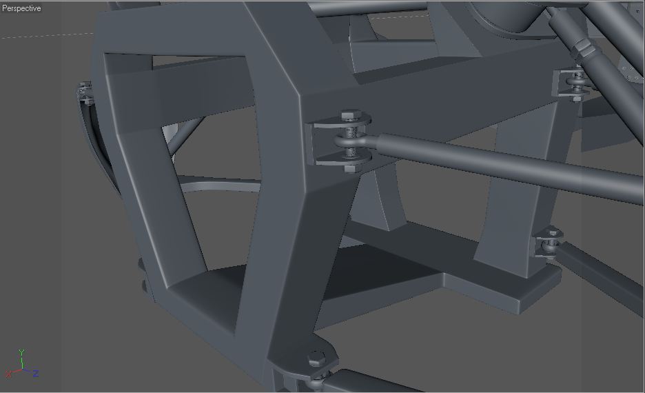 Come si può alcune parti non sono ancora complete, mancano dadi e bulloni, gli ammortizzatori andrebbero rifiniti con i giusti particolari, per ora sono come reference per il posizionamento delle parti, solo che il progetto a questo punto sta diventando veramente ingestibile, e manca ancora la parte frontale (della quale dovrò "copiare" da altre auto, perchè non si vede un granchè) e alcuni pezzi della gabbia.
