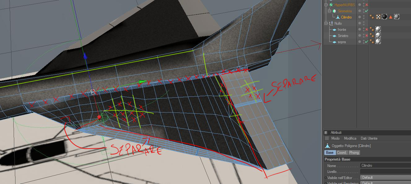 adesso vorrei che le ali rimanessero così squadrate senza che vengano ammorbitide da un hypernurbs , quindi posso selezionare le ali e col comando suddividi gli do più poligoni ?