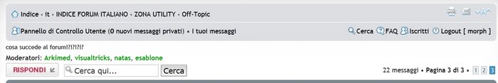 Ciao Flow, strano io ho provato e funziona, mi raccomando aggiornate la pagina facendo il RELOAD o REFRESH perche' abbiamo cercato di mettervi il forum nuovo senza necessita' di riloggarsi, nessuno si e' trovato scollegato e questo e' un lavoraccio che il nostro Daniele ha fatto con impegnoflowbox ha scritto:comunque non voglio sminuire l'impegno dei nostri admin nel darci un forum gratuito e sempre ai massimi livelli