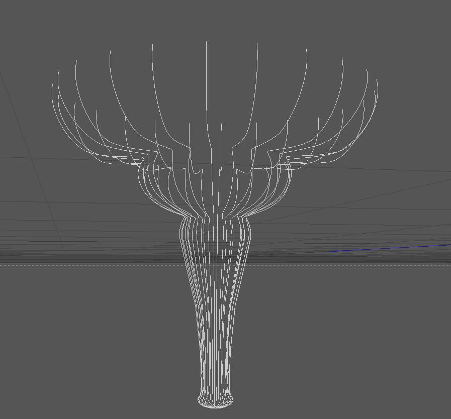Ho duplicato la spline A per 11 volte su 330° applicando la sola rotazione e selezionando crea istanze in modo che ad ogni successiva modifica della spline di partenza si modificassero anche tutte le istanze.