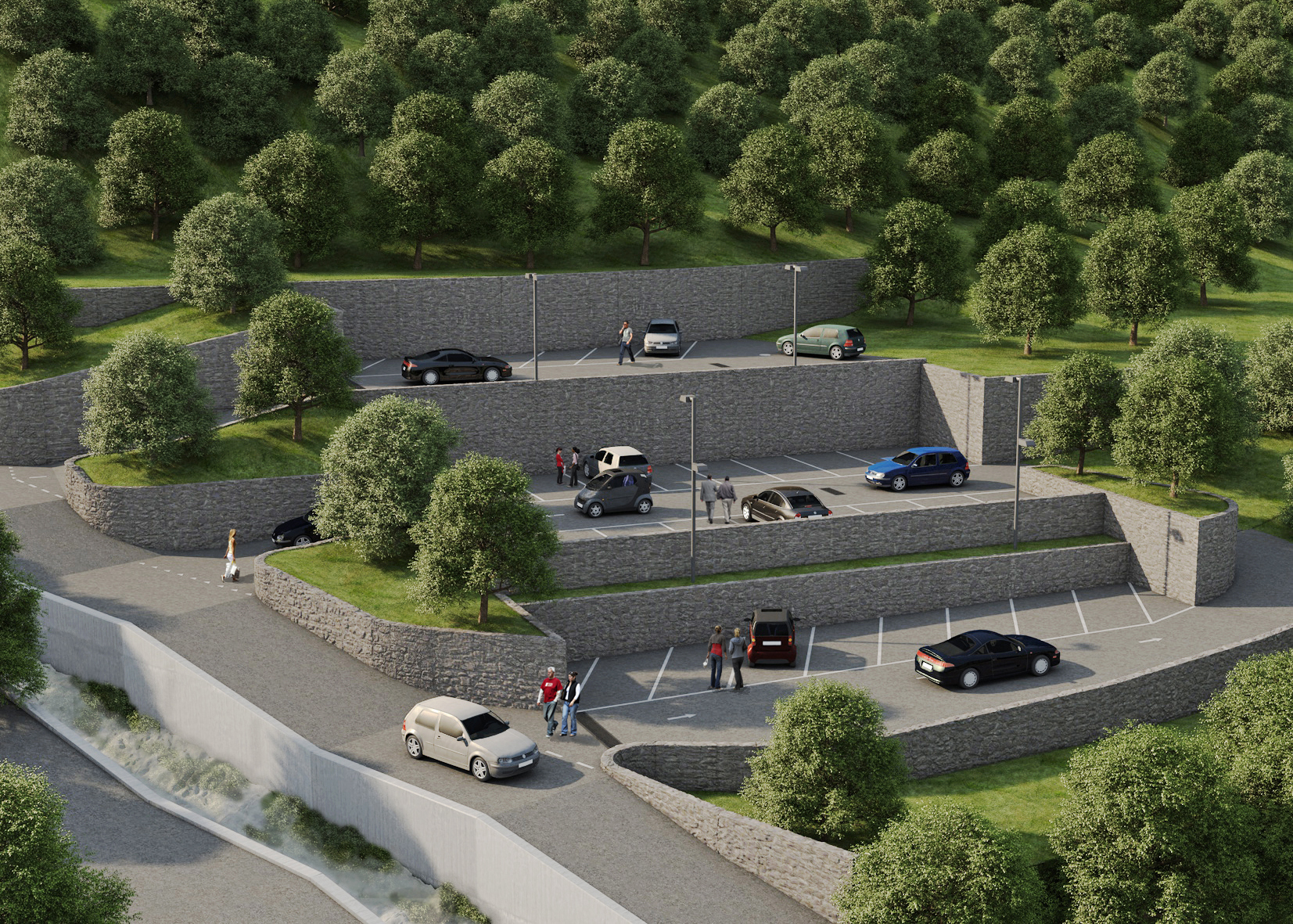 credo che ti sia sfuggito" l'ammorbidire" con Ps i cambi di pendenza nella strada di accesso ai parcheggi... se ne hai ancora "voglia" potresti ammorbidire le teste dei muri(magari inserendo del verede che scende)...