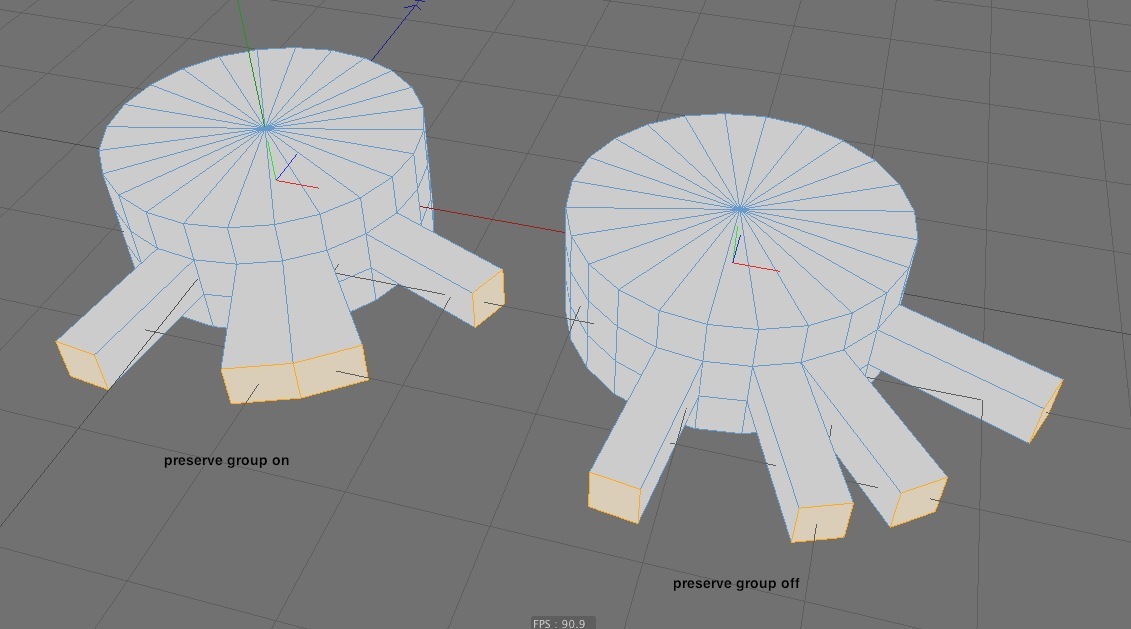 Ero abituato ad agire tranquillamente con 3dsmax dove estrudendo i poligono essi erano paralleli tra loro non davano quella forma diciamo di cono come fa c4d, oh per essere più precisi potevo fare entrambe oltre ovviamente ad una estrusione a gruppi singoli.