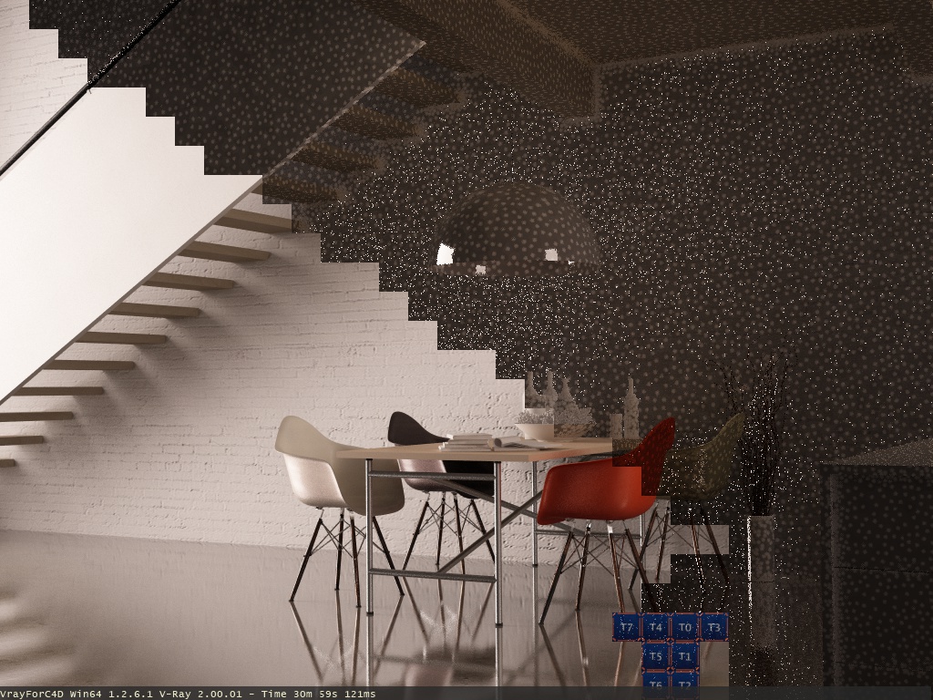 Ho interrotto il processo di renderizzazione perché il pessimo risultato si nota, il pavimento non si avvicina proprio per niente!:'(