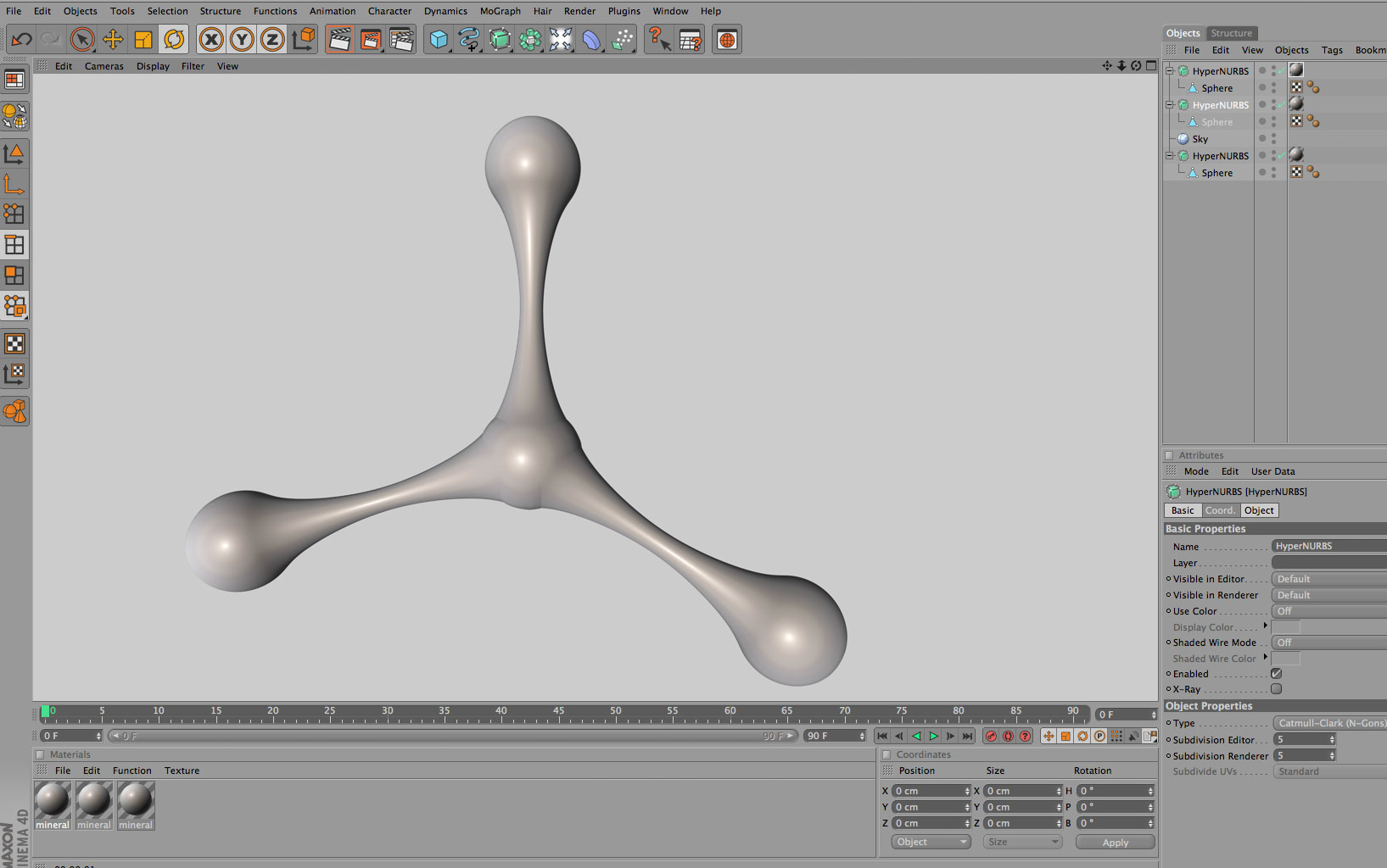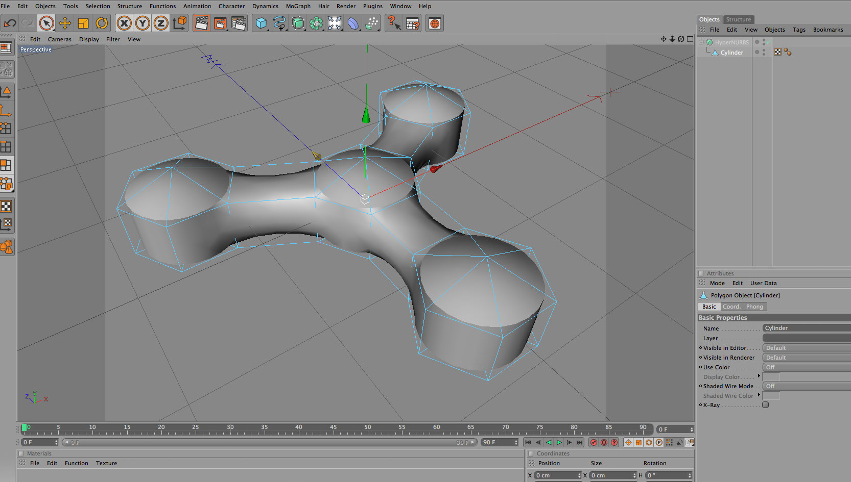 Poi puoi cominciare ad usare gli strumenti di modellazione (magari attivando l'interfaccia apposita, così hai i comandi a portata di mano!) per estrudere, tagliare, ecc. Può essere utile attivare l'hypernurbs per vedere l'effetto delle trasformazioni.