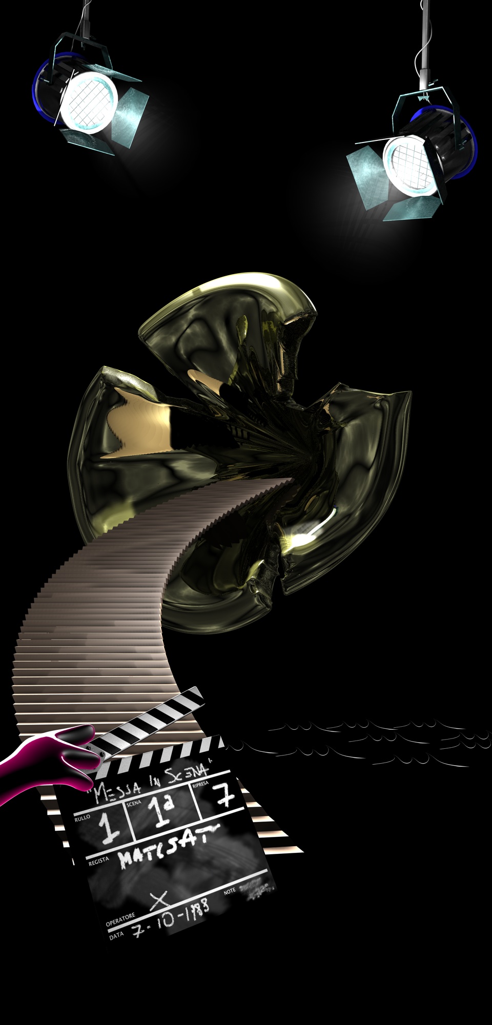 Piuttosto della mesa in scena definitiva, quella dove tutti fanno bene la loro parte, ora la scena propone un momento appena precedente, quando ci sono ancora i tecnici, le star finiscono di imbellettarsi e i curiosi si apprestano a rovinare il ciak ...