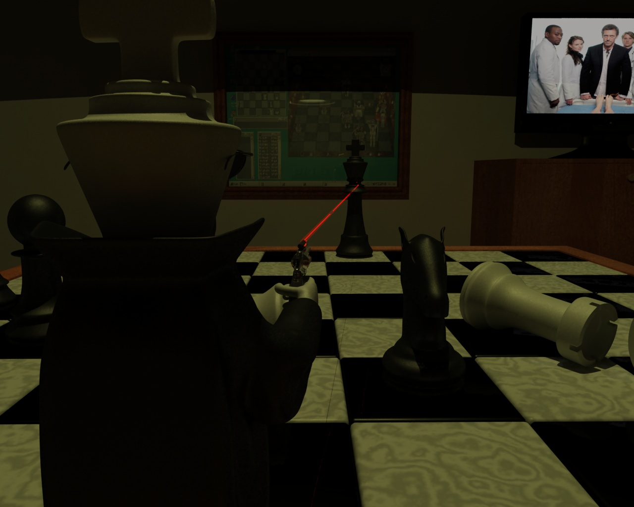 Almeno per questa inquadratura (poi ne faccio altre 2 sugli scacchi, che sono i veri protagonisti della scena) sono quasi alla fine.... ma c'è un problema