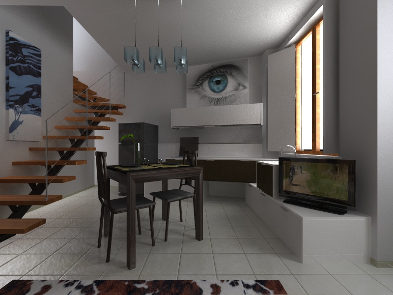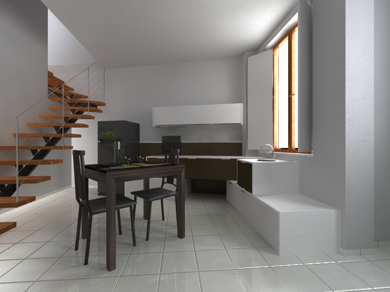 Il problema maggiore è stato illuminare la parte lontana che con le sole luci iniziali risultva un pò buia quindi ne ho messa un'altra area dietro il muro delle scale senza proiezione di ombre per schiarire......ora schiarire è schiarito ma forse un pò troppo!