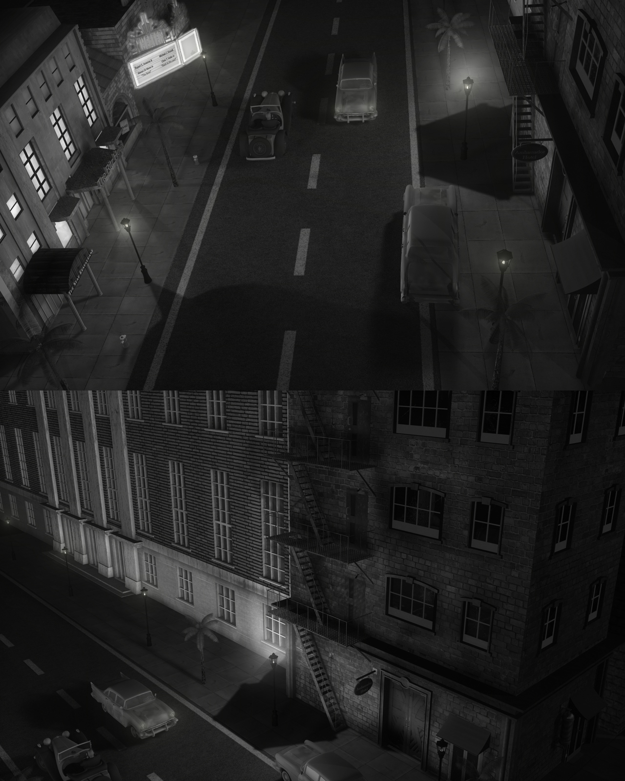 Una bella atmosfera, queste scene notturne in bianco e nero. :)