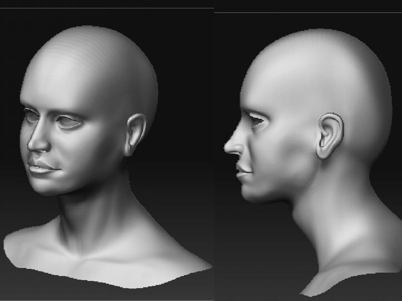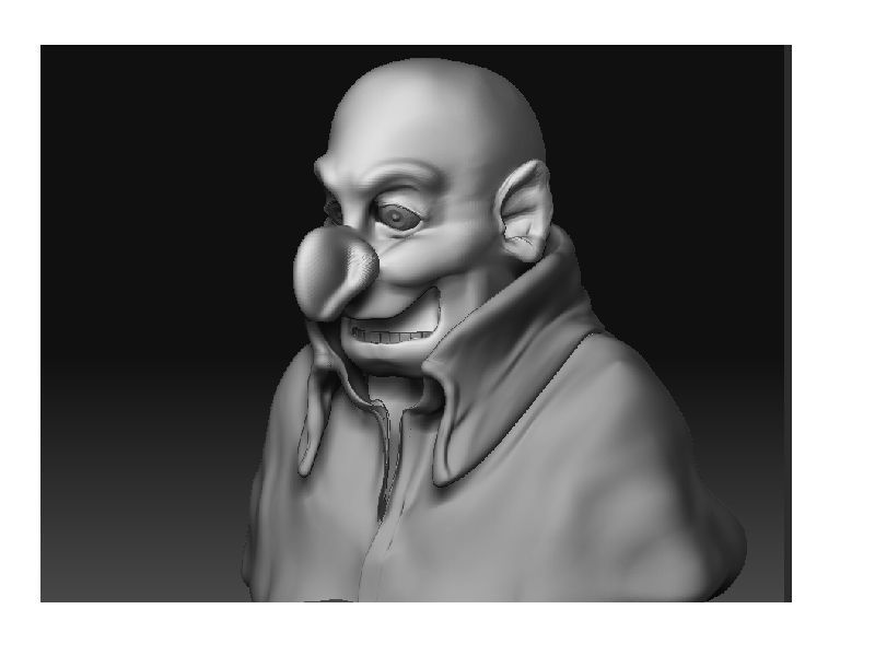 In quest'ultimo personaggio forse dovresti rivelare un po' di narici anche nella versione lowpoly, così da non avere i difetti che risultano dopo la scolpitura, ... quano vai ad allontanare troppo vertici inizialmente vicini il displacement risulta più approsimativo in qul punto rispetto ad altri dove la trama è più fitta.