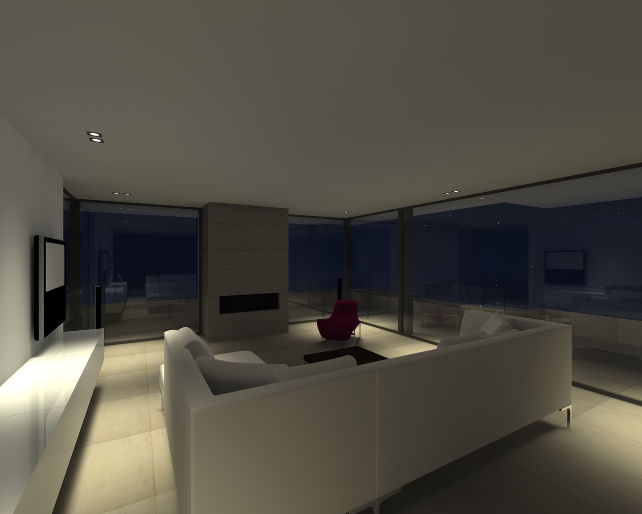 per far sembrare il faretto acceso inserisci dentro il modello del tuo spot un cilindro con luminanza attiva (ti darà l'effetto desiderato) mettilo poco sopra gli spot altrimenti te li copre!