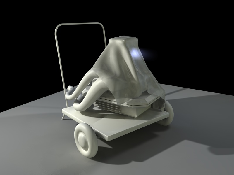 Pensavo di creare un propulsore, (totalmente inventato e strambo), ... il grande capolavoro di quei due ... nascosto sotto ad un telo, ma che fa capolino e di cui si vede una misteriosa luminosità bluastra ... simile all'alimentazione del magnete che tiene lontane le schegge metalliche dal cuore di Iron Man ... posto una bozza veloce.