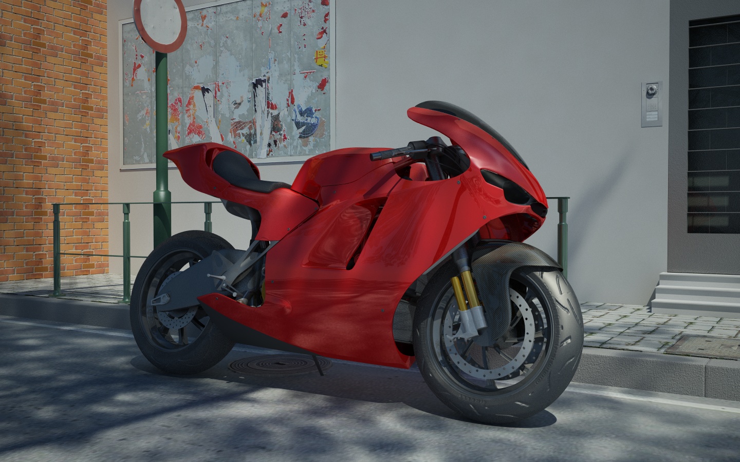 sarebbe forse piu opportuno fare risaltare la moto con un'inquadratura che la contiene pienamente e che non fa perdere i particolari, modellati ottimamente.