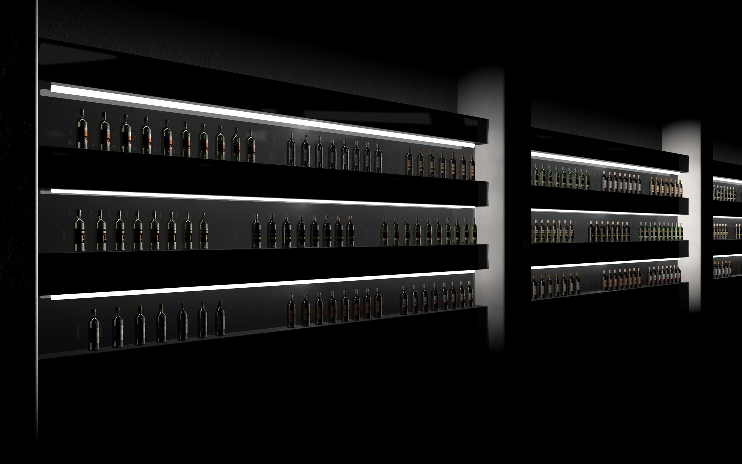 Forseforse ce l'ho fatta...questa è una vista senza le bottiglie altrimenti finiva dopodomani...quella con le bottiglie la manderò stasera dal pc di casa che ci mette decisamente meno...e magari metterò anche l'ombra ai vetri altrimenti si vede sulla parete retrostante solamente quella prodotta dal tappo e dall'etichetta...