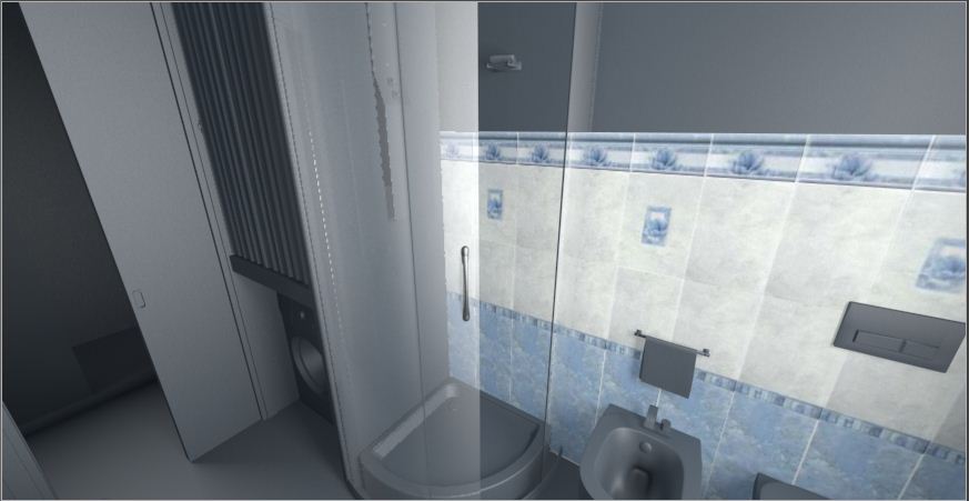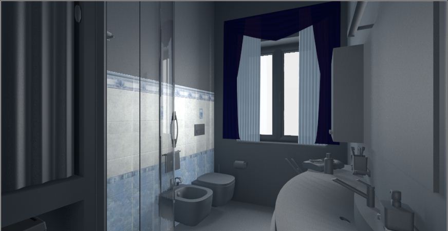 Ciao per quanto riguarda il motivo floreale, è una scelta utilizzare solo un tipo di fiore...per gli altri parametri sto apportando le modifiche...la bump ho sbagliato io, ho seguito la procedura di un tutorial trovato su questo sito ma era riferito a un muro di mattoni dove bastava invertire i colori della texture in photoshop mentre per un rivestimento in piastrelle bisogna disegnarsi appositamente una bump che ricalchi le fughe...al vetro provvedo a togliere la specularità, mentre per le piastrelle ho copiato perfettamente i parametri dal materiale del tuo file...come valore di dispersione ho messo un 2%...le luci, presto posterò una vista in pianta per far vedere dove le ho posizionate...comunque ho messo un cielo sky a cui ho asseganto un materiale con luminanza attiva, poi una luce area nella finestra intensità 230%, con decadenza lineare e ombra di tipo area, ho inserito un' altra luce di tipo area nella porta opposta alla finestra, con luce al 90%, decadenza lineare e ombra area...quest'ultima luce l'ho allontanata un pò dalla porta, per simulare il fatto che il bagno si affaccia su di un piccolo corridoio che prende molta luce dal soggiorno della'appartamento...infine ho attivato il sole, regolato alle tre del pomeriggio(l'ora in cui il sole è più forte dalla parte dove si trova il bagno) e ho attivato un'ombra di tipo area sempre...