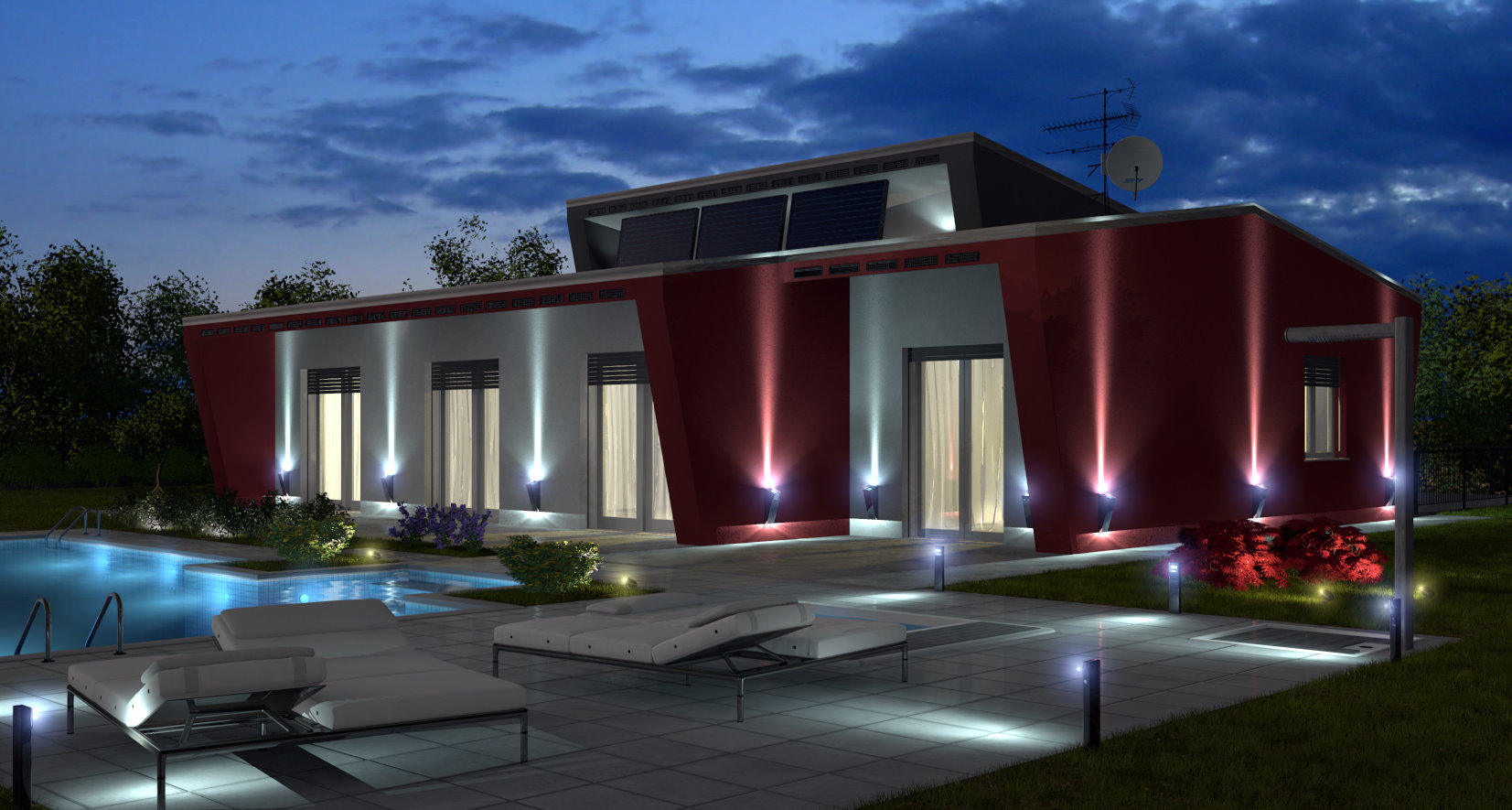 Ci sono alcune luci comunque ancora da sistemare, alcune da abbassare altre da alzare (tipo i faretti della piscina), anche alcuni effetti lente sono da modificare, però, come prima bozza, non mi dispiace.