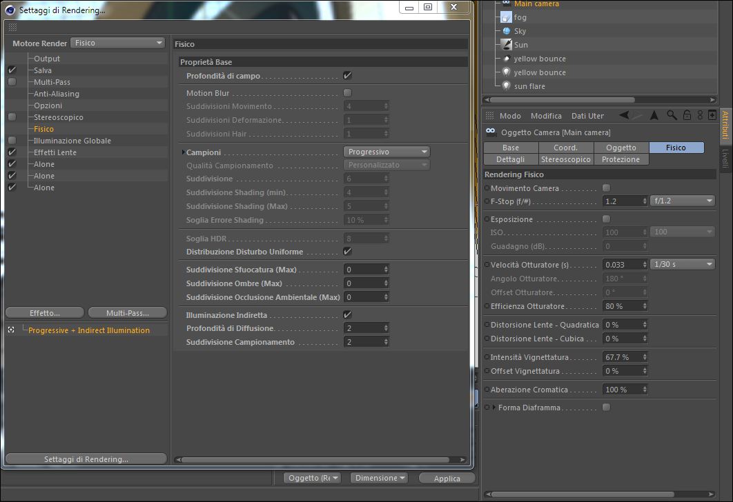 FISICO = dof + QMC + motion blur + illuminazione indiretta