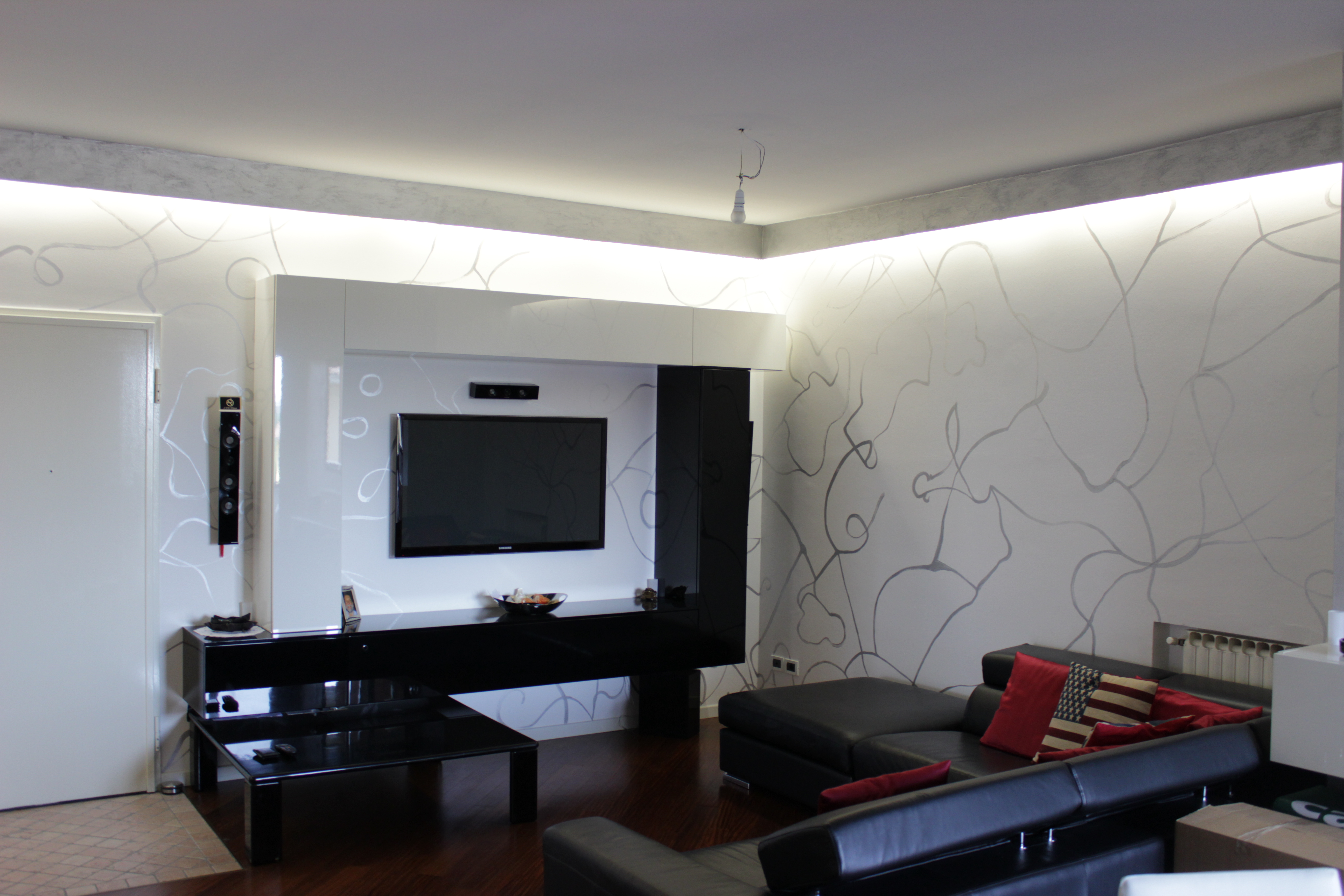 per il muro ho cercato di simulare la pennellata di pittura...quindi sono partito da una texture e con PS ho cercato di ripertela..sono alle prime armi di photoshop però....(le posterei ma sono troppo pesanti)