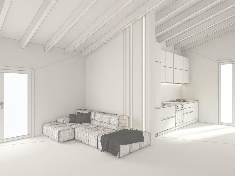 Piccolissimo aggiornamento... modificata la parete divisoria in cartongesso così il divano non sporge più... lampada verticale rimpicciolita e duplicata... ;)