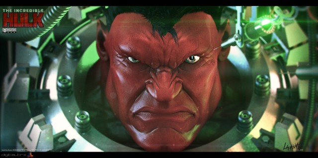 L'idea era quella di giocare essenzialmente con 2 colori contrastanti, il rosso della pelle e il verde dei raggi gamma!