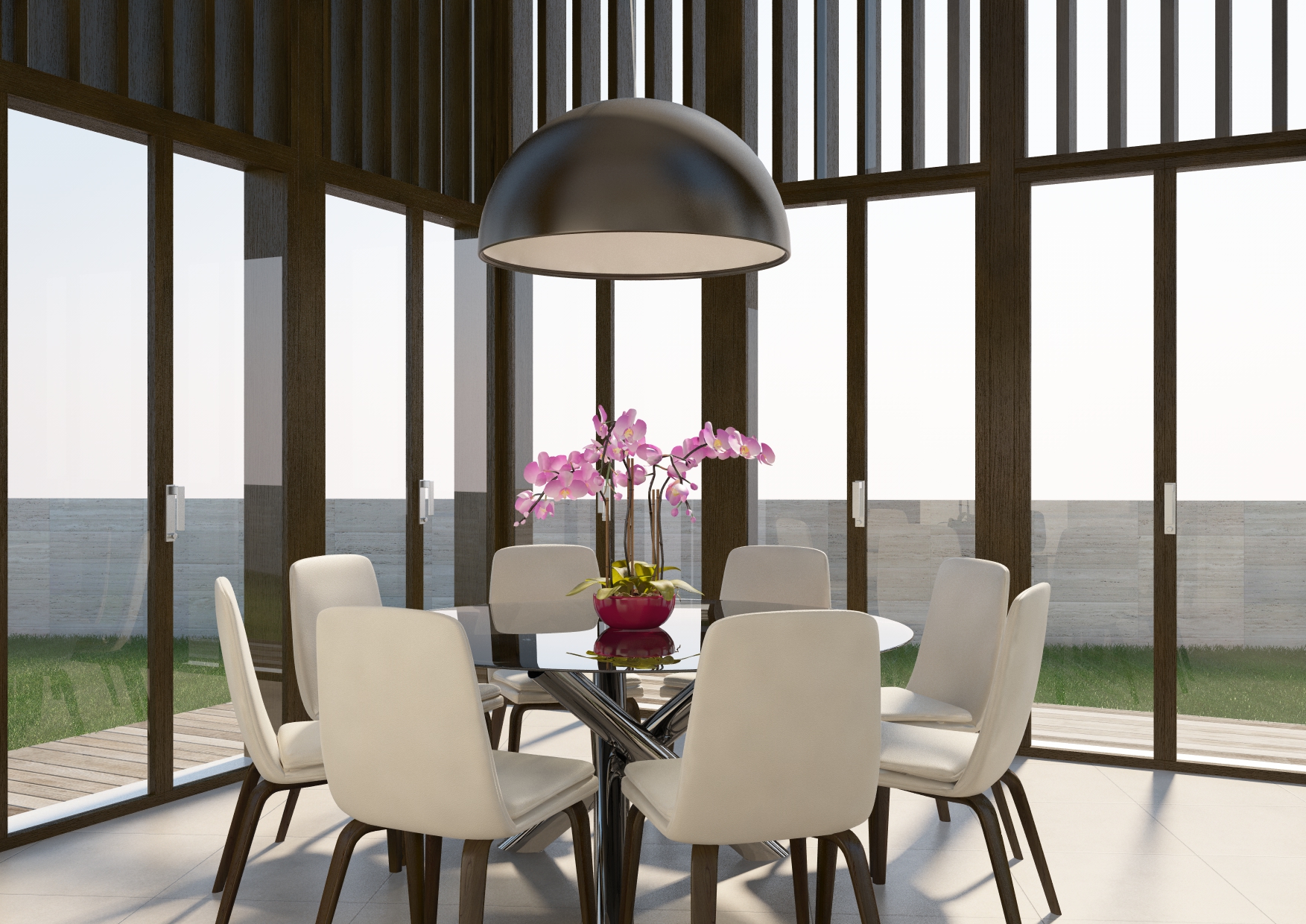 La texturizzazione della sala pranzo/colazione è completata. Vi posto un primo rendering con parametri abbastanza bassi che verranno in seguito aumentati per la vista definitiva. :) Ora proseguo con il resto. ;)