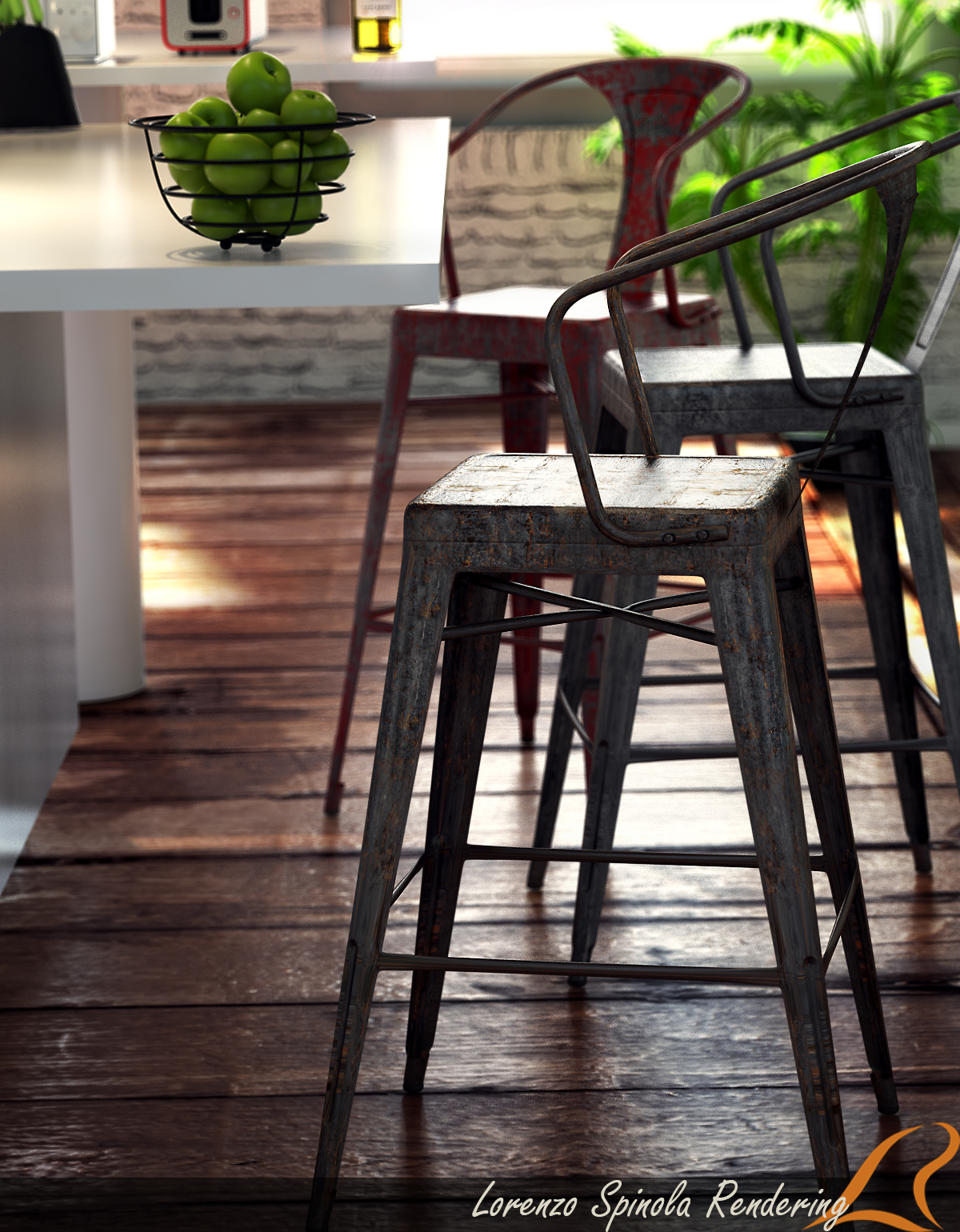 dato che comunque mi ero modellato già gli sgabelli, ho deciso di studiare un po' la composizione e l'inquadratura dell'immagine.