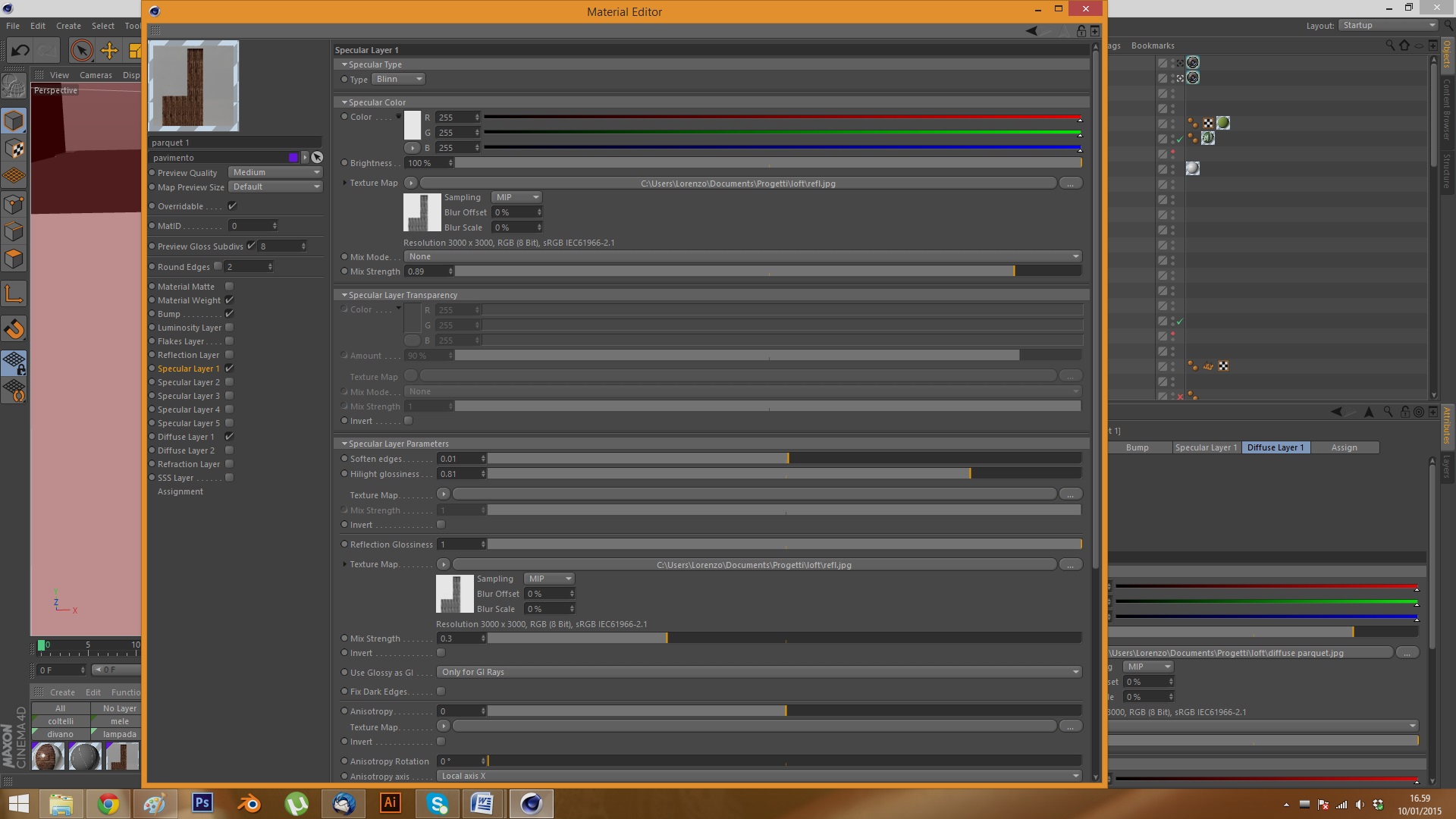 Dato che sto studiando Vray in quanto ho fatto il passaggio dal motore di cinema 4d, sto incontrando problemi sul creare pavimenti in legno realistici con le giuste riflessioni...il tuo è davvero ottimo come resa e riflessioni...posso chiedere che parametri hai impostato per fare il pavimento?