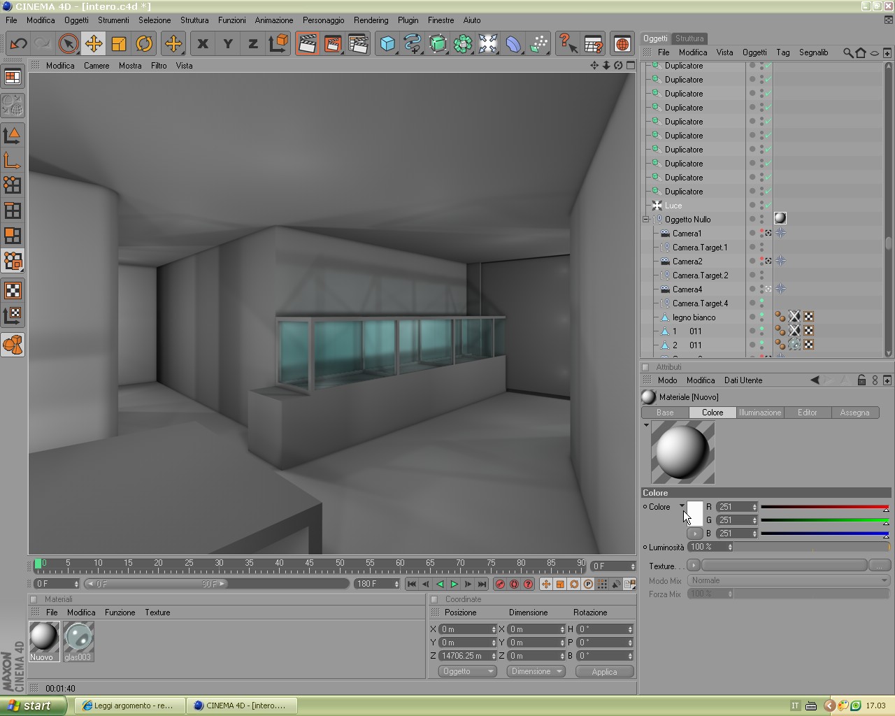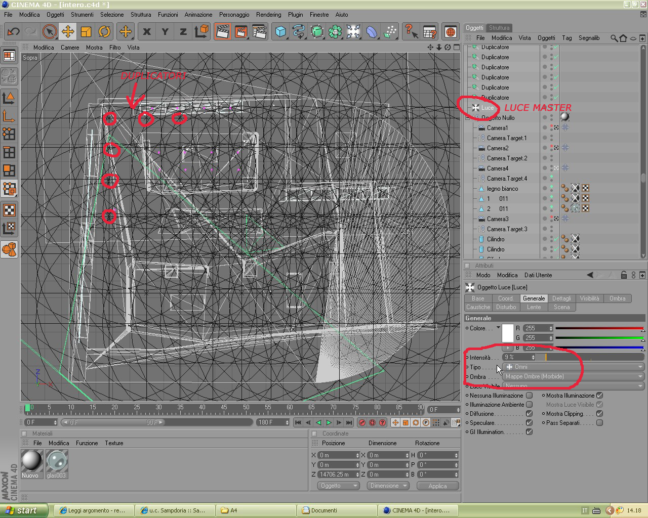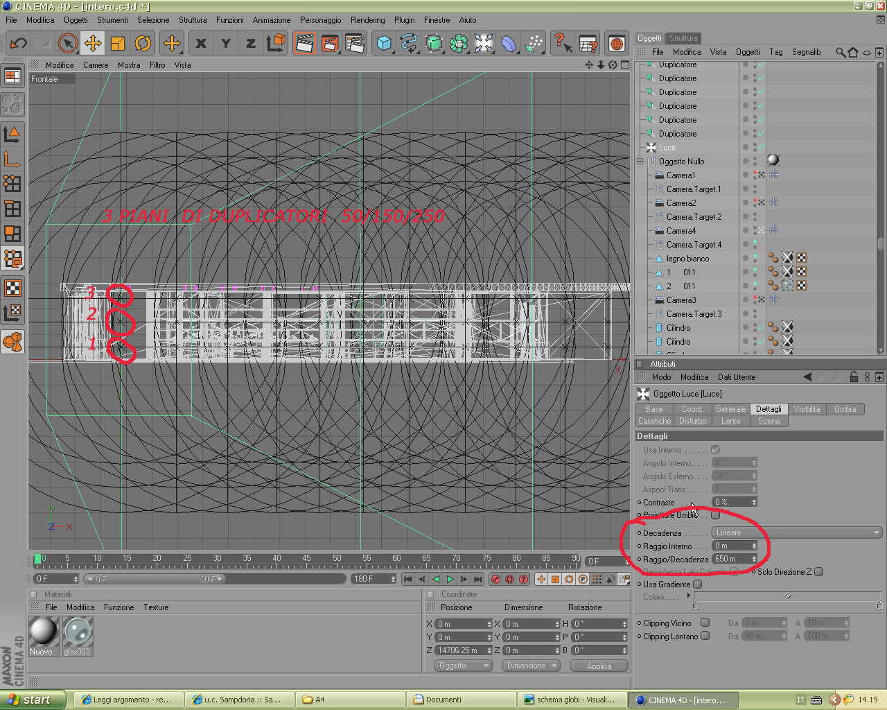 Devi eliminare la decadenza da tutte le luci omni anche perchè cosi com'e ora con i valori uguali crea un confine netto, poi nei parametri dell'ombra metti 180 alla risoluzione, deselezioni bias assoluto e guarda se viene fuori quello che volevi.