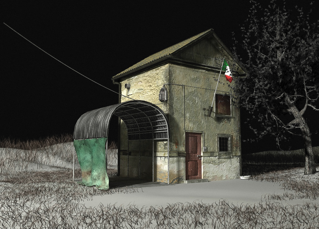 La tex dei muri non è stirata, te lo assicuro, invece è sì a definizione non eccessiva, (1024 x 3072), ma perchè non serve di più nell'economia delle due inquadrature in cui la vedremo, un totale nel quale sarà più piccola di così, per avere in campo anche parte dell'ambientazione circostante, e un piano più ravvicinato, ma nel capanno, dove ci saranno i due finanzieri al lavoro, ... la caserma sarà in secondo piano e fuori fuoco.