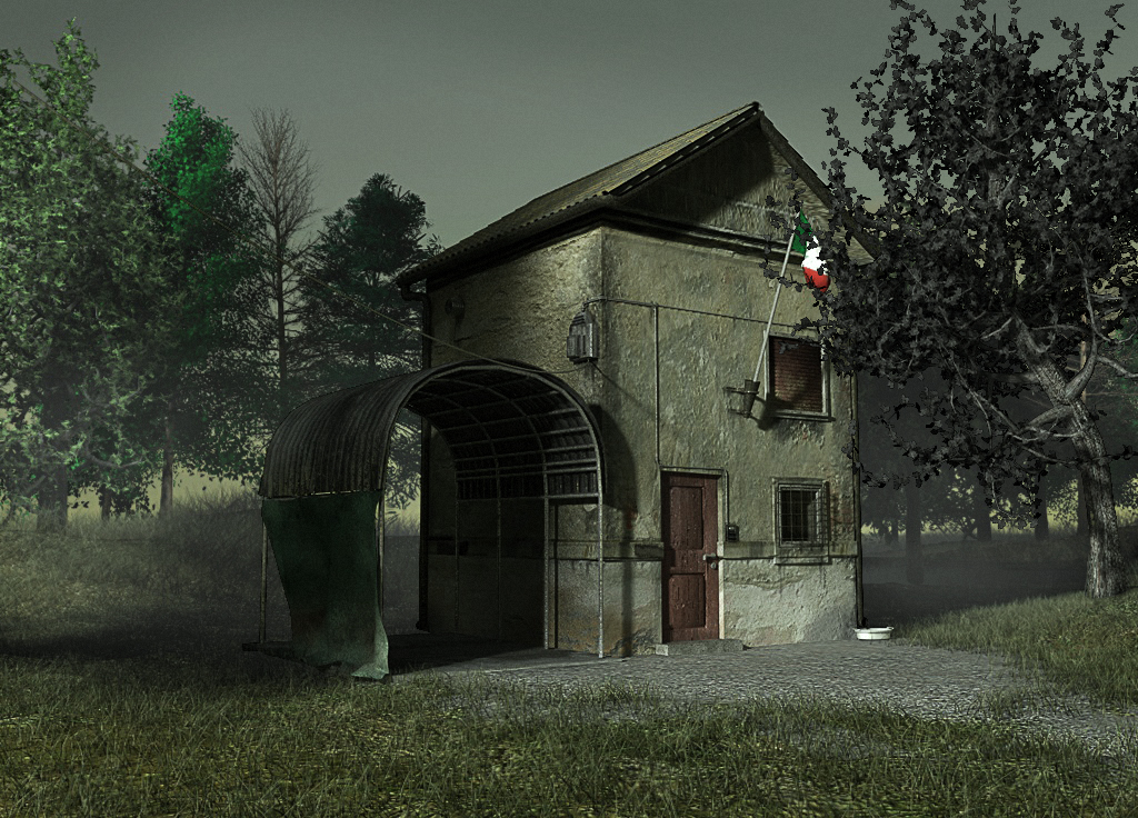 Eccetto l'albero di destra, è tutto in un'unica scena, ... il monte che nasce da dietro la caserma sarà un livello a parte inserito in post ... a questo punto credo che le vedute panoramiche verranno per ultime, ... non me la sento ancora di mettermici.