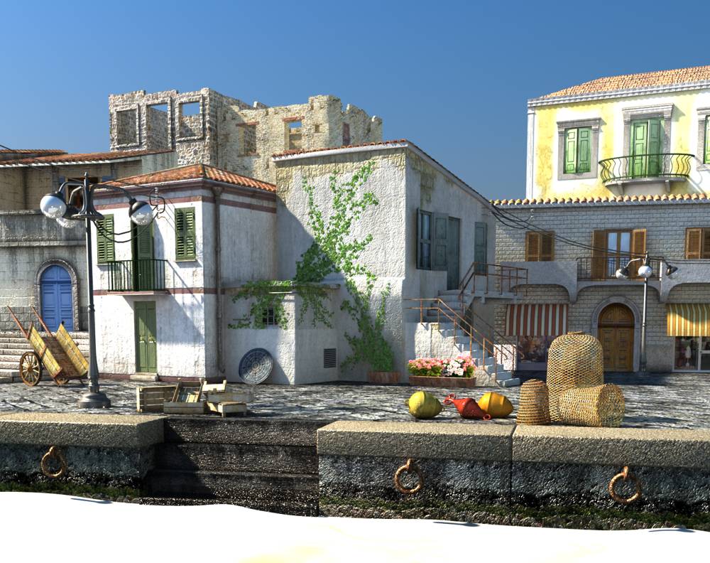 Genio che ti devo dire, non ho segreti particolari. Per lo più uso tex e non procedurali nei miei materiali e prima di sceglierne una ne visiono e ne provo tantissime "sul campo". Però la maggior parte delle volte va a finire che non mi soddisfano e allora me le creo da me magari sovrapponendone di diverse com'è il caso della maggior parte di quelle che ho utilizzato fin'ora o come ad esempio nella tex del fronte del molo in cui ne ho usate 4 sovrapposte e blendate tra di loro in 2d. Uso anche molte fusioni specialmente con mappe di "sporco" o con lo shader occlusione ambientale e le trasparenze tra i vari canali. Insomma i materiali sono abbastanza semplici nella loro costruzione, il lavoro grosso lo faccio nella scelta delle tex e in quello della proiezione sull'oggetto che mi evita la maggior parte delle volte di usare body paint.