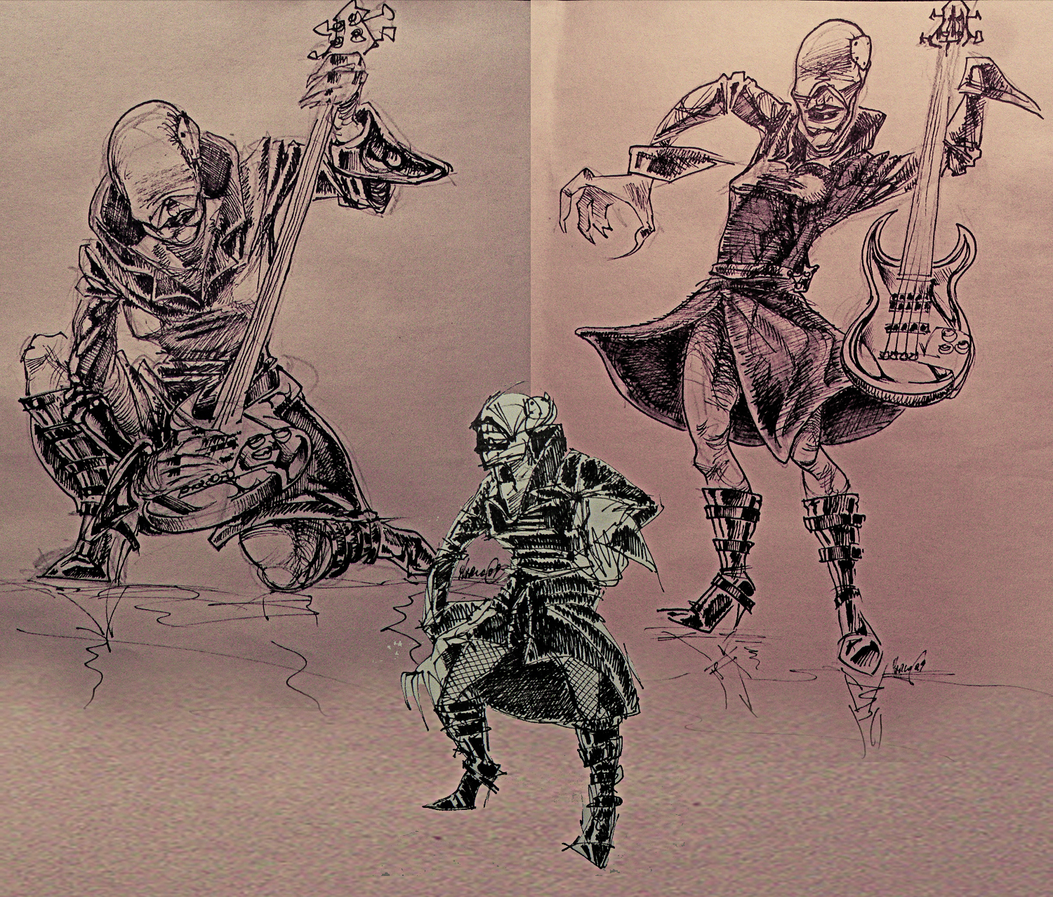 Ecco degli schizzi in cui ho cercato di farmi un'idea per la posa del personaggio, ... quella a sinistra mi ispira di più !