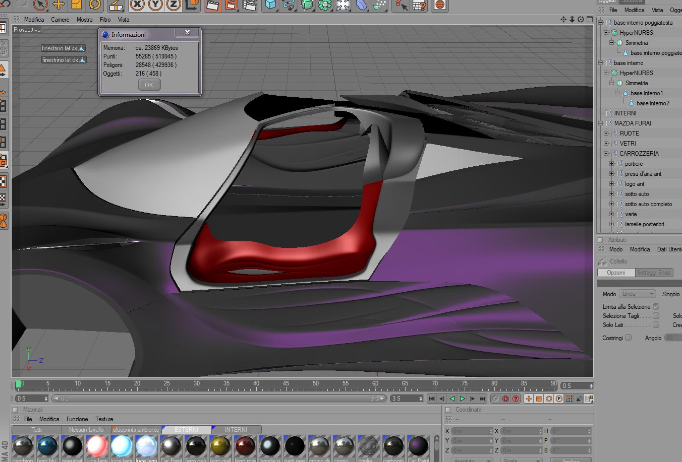 piccolo aggiornamento... sto facendo gli interni anche se non ci sono molti riferimenti... nello screen c'è anche la "finestrella" con le informazioni del modello... spero che il mio pc possa reggere un modello così durante il render... sennò mi inc**zo!!