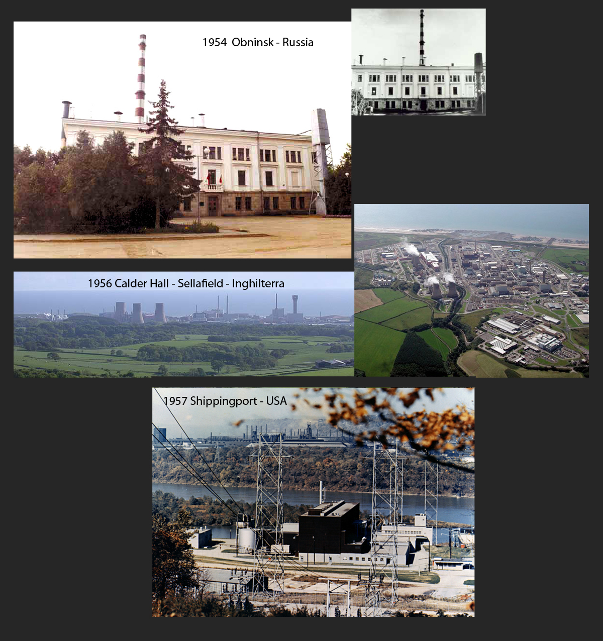 A titolo informativo, ecco le prime centrali nucleari, ... di quella inglese non ho trovato fotografie d'epoca, nelle immagini la si vede com'è oggi.