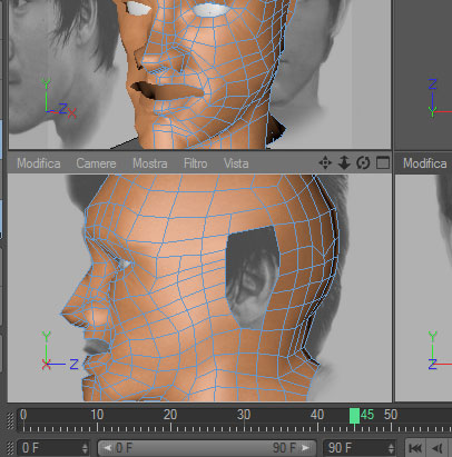 Il secondo è che nella vista frontale ora avendo creato tutto il cranio vedo miliardi di punti e non riesco a lavorare all'occhio e alla bocca come si agisce in questi casi?