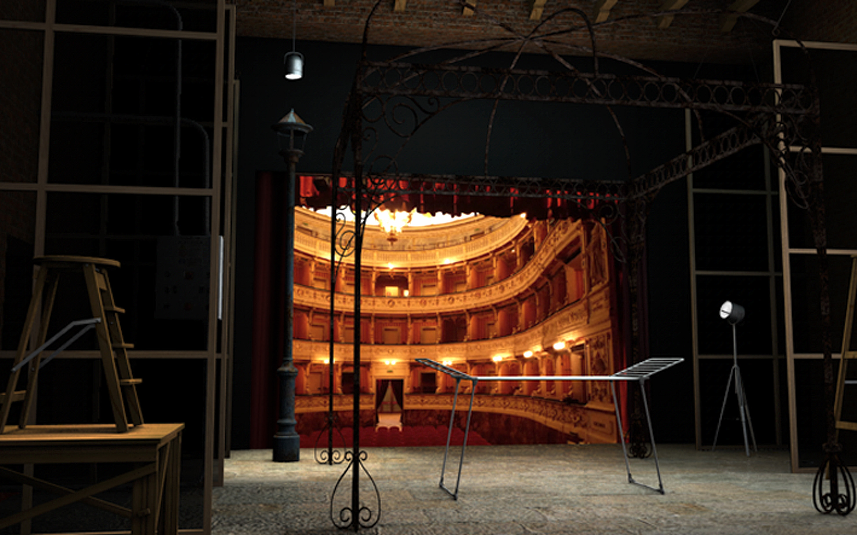 bozzetto con sipario chiuso... in attesa di sviluppi con inserimento personaggio femminile ho fatto alcune varianti. Il bozzetto rimane quello di prima, ma ho provato a modificare alcune cose....