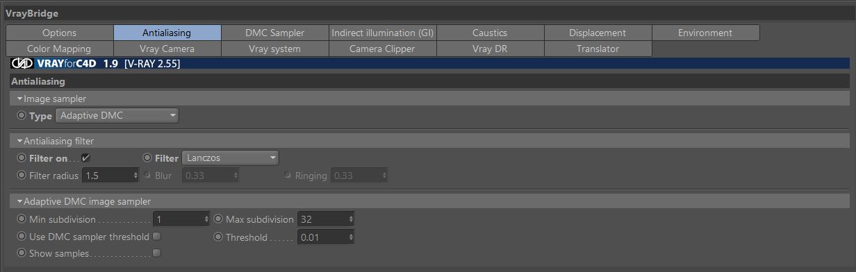 Questi sono i valori di AA della versione 1.9 impostati nella scena postata