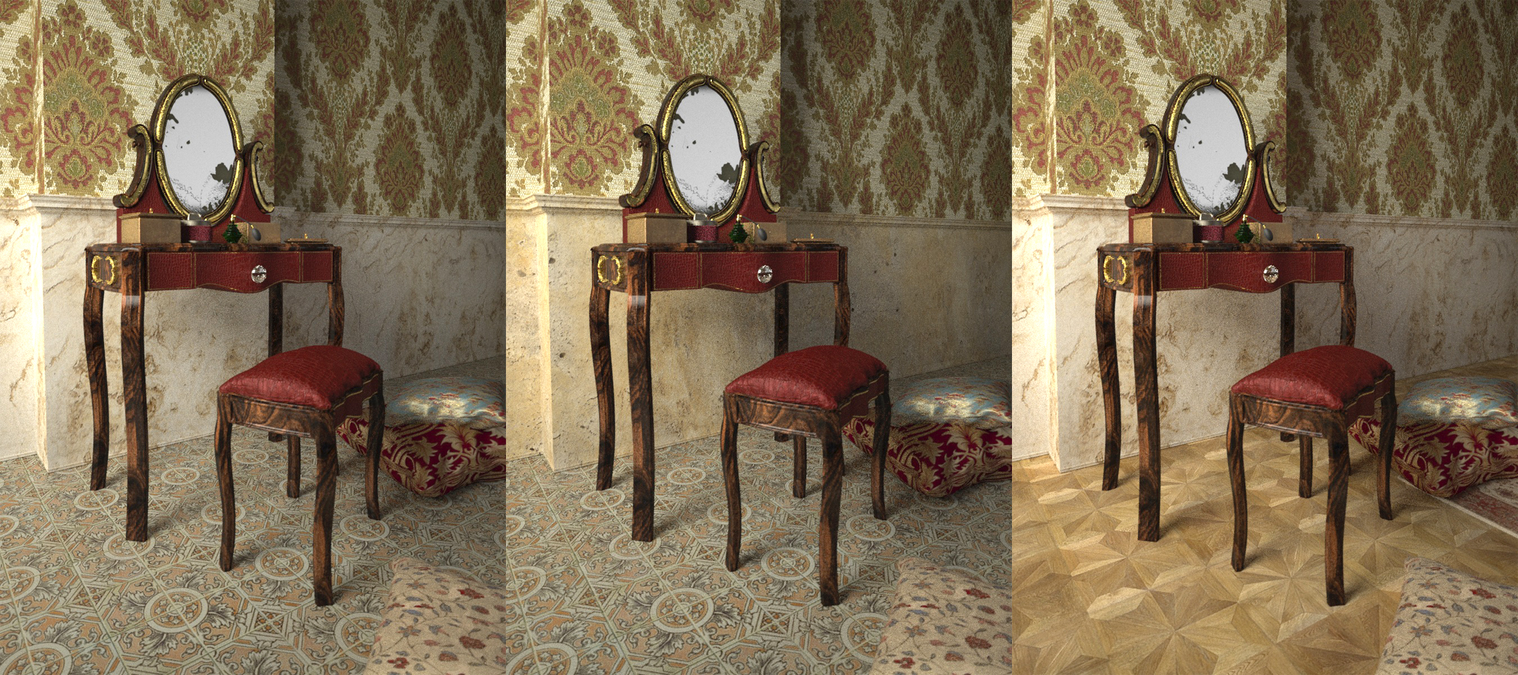 Quoto Giancluca, non c'è nulla che stacca su nulla, si crea confusione visiva!cesgimami ha scritto:tra i marmo rosso e la tappezzeria damascata l'impatto è molto forte,se usi il marmo rosso prova con una tappezzeria a righe,o se vuoi usare quella damascata usa un marmo meno venato.Il pavimento non lo vedo bene in questa scena,io userei un tinta unita o marmo travertino.