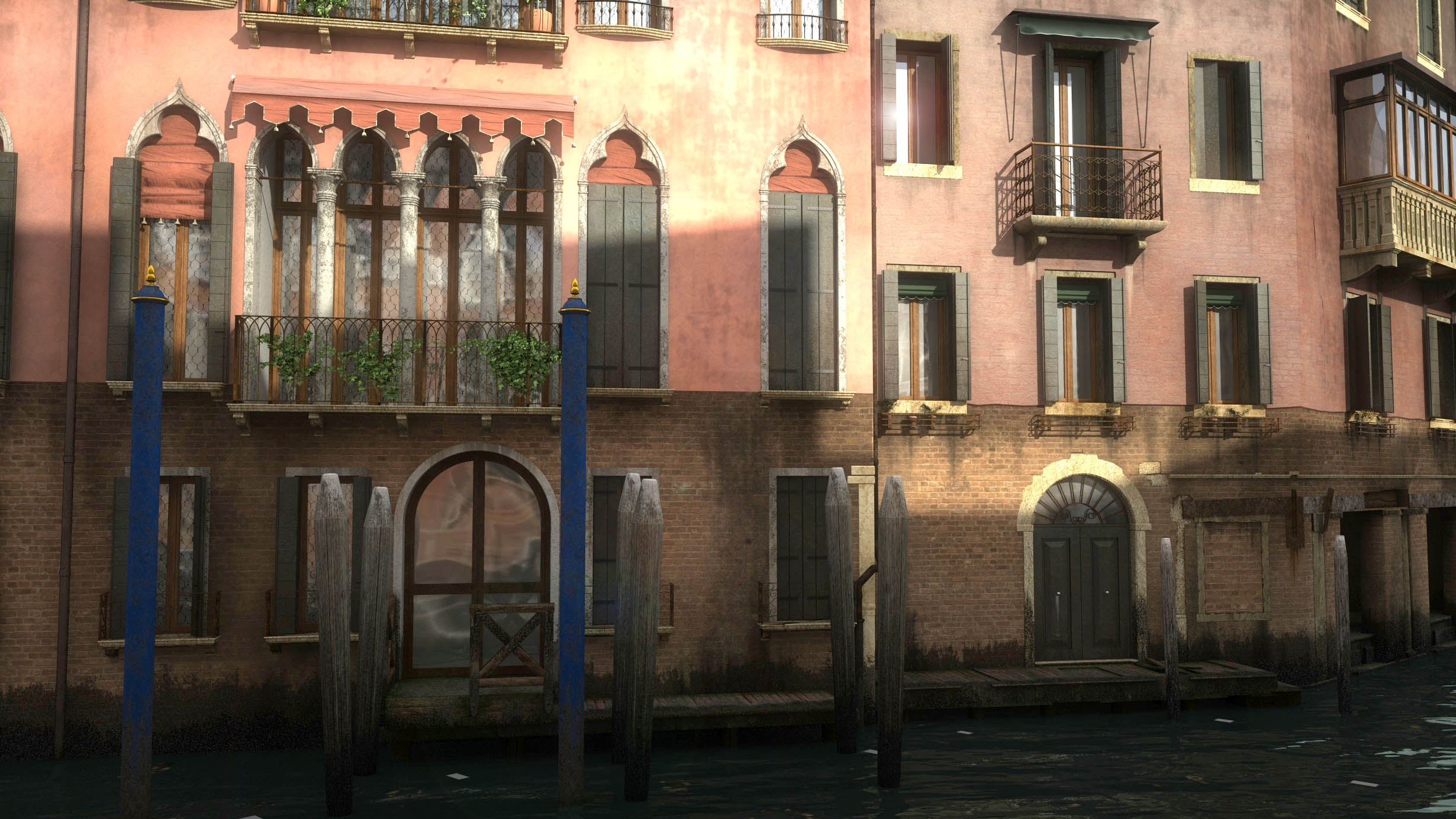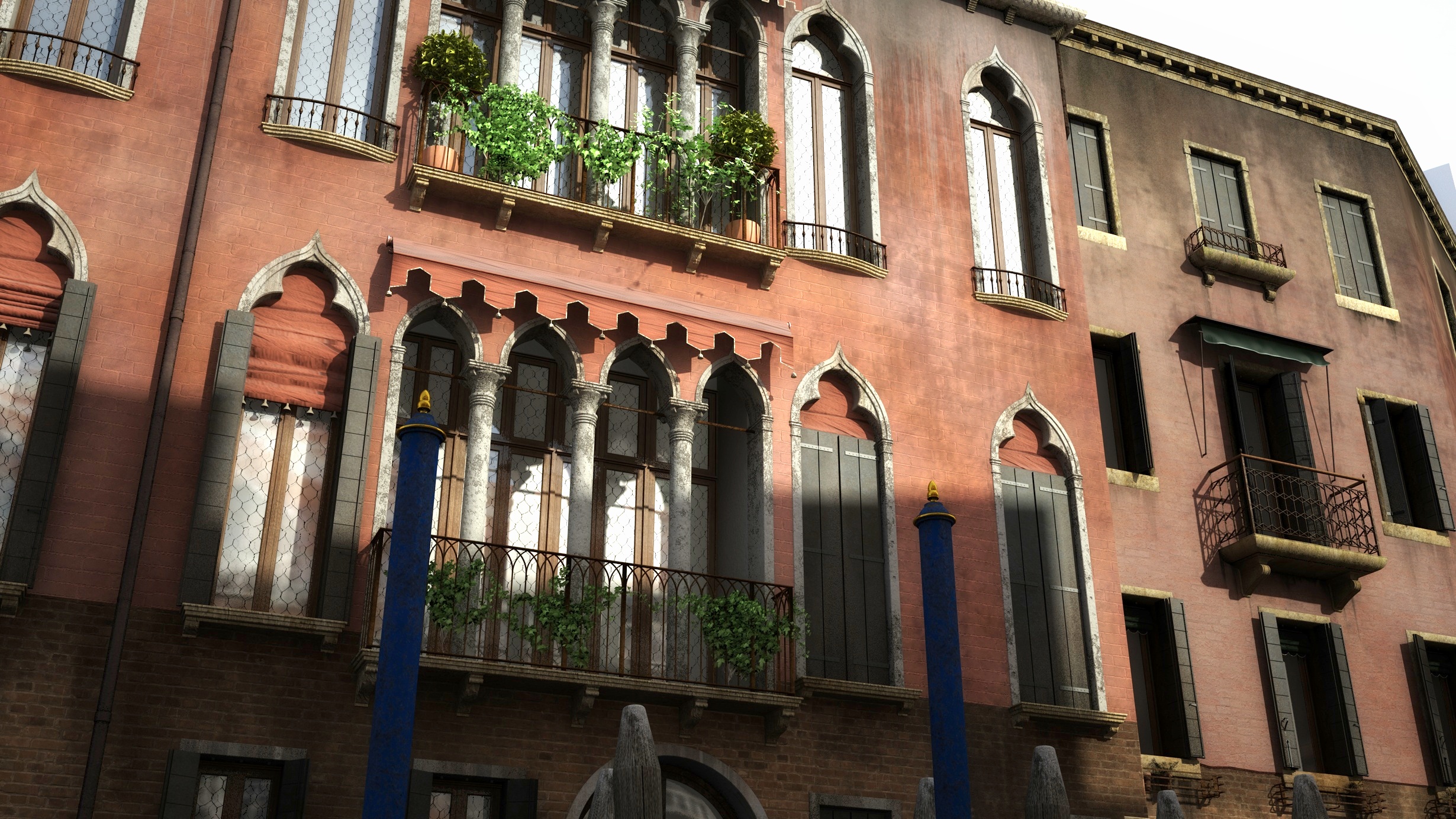 ho ripreso in mano questo lavoro cercando di migliorarlo. ho aggiunto/modificato le pietre dei solai delle terrazze, gli scuri con la relativa ferramenta e la text delle pareti.