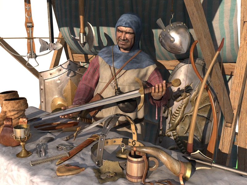 altra cosa l'elmo sulla sinistra...credo che nella posizione in cui è potrebbe riflettere parte della bancarella..