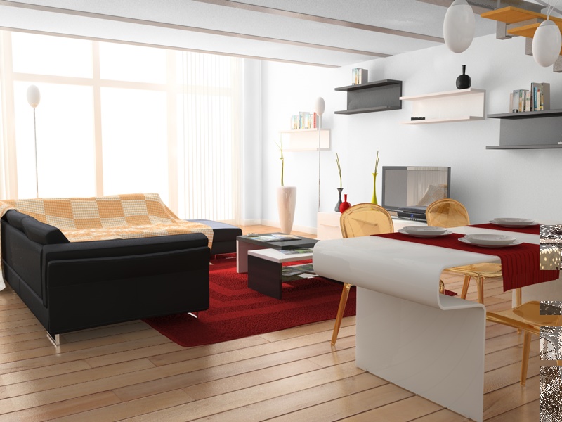 _aumenterei ad hoc l'antialiasing x la texture del pavimento (sotto al divano si vedono delle seghettature tra un'asse e l'altra del parchè); forse andrebbe bene un Tag Compositing applicato al pavimento con attivo Forza AA e lì modofichi cheto cheto l'AA (partendo da 2x2, 2x4, 1x8, vedi tu senza esagerare);