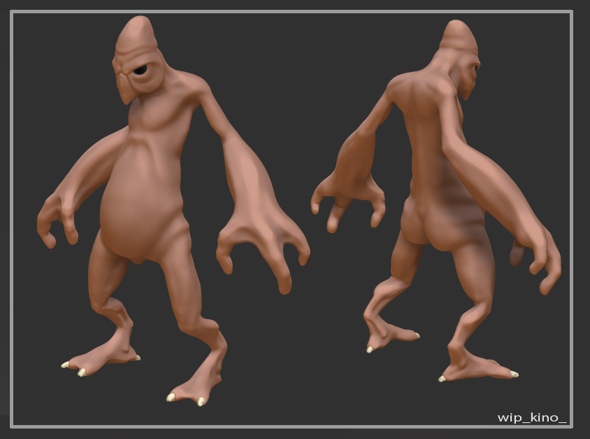 Per i piedi...già non piacciono nemmeno a me e li sto ancora studiando, l'anatomia per il momento indica il classico piede da pollo 2 dita grosse davanti (anche se sarebbero 3, ma stilizziamo!!) e un ditone posteriore...