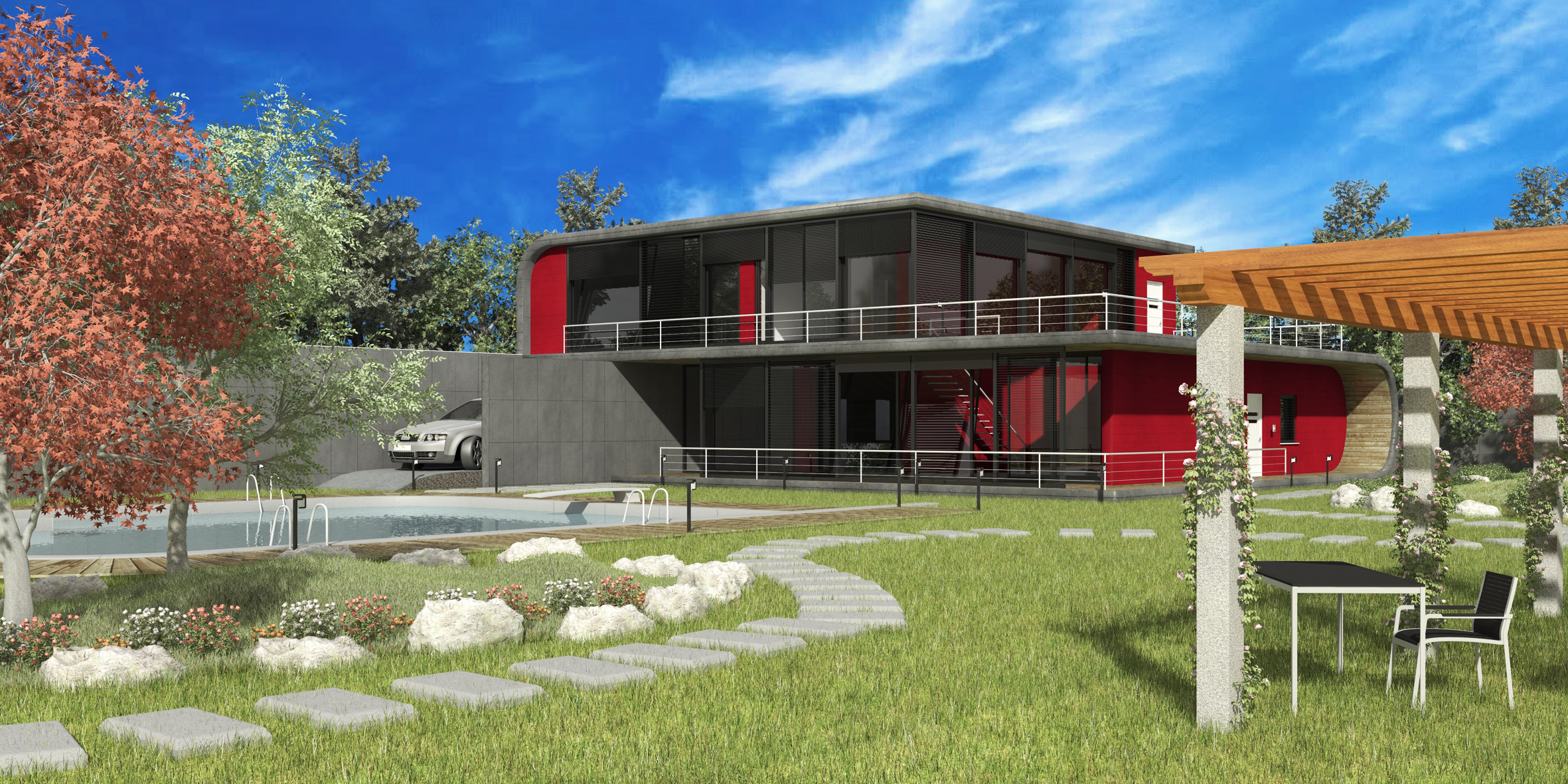 le teste delle travi del gazebo, vista l'architettura della casa, le farei con un taglio più moderno. :D :D
