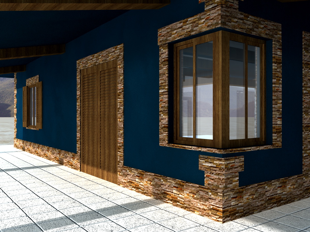 danilo10 ha scritto:Cielo fisico 250 %...sole disattivato..ho inserito una luce infinita a 120%...settaggio rendering 3 130 110 1...attorno alla casa c'è una serie di luci disposte circolarmente con un'intensità dell'8%..ho cercato di settare al meglio l'intonaco e il vetro e il pavimento..che ne pensate?