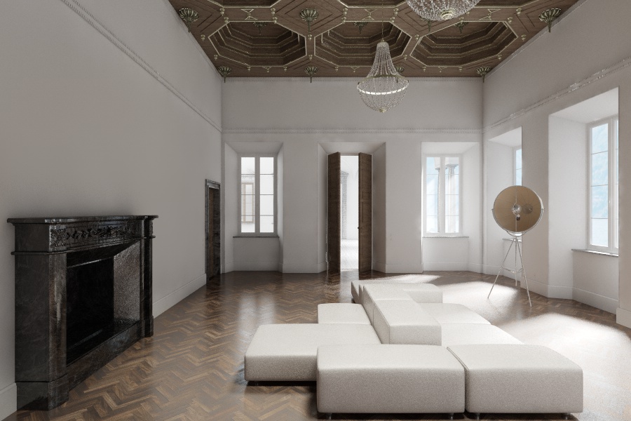 lo so che mi picchierete per questa affermazione ma l'inquadratura è puramente una prova, mi serviva solo per vedere l'intero salone.. vorrei solo decidere a grandi linee come illuminare la scena. Successivamente dopo aver inserito tutti gli arredi oggettistica e decorazioni deciderò quante e quali inquadrature fare. Poi lo so per ogni inquadratura avrò bisogno di modifiche personalizzate.. ma almeno evito di fare 2400 prove luci moltiplicate per ogni inquadraturasalva ha scritto: Ah, un'altra cosa...l'inquadratura rimane un pò anonima e questo rende l'ottima modellazione vana...abbasserei il punto di vista, in modo da esaltare la lavorazione del plafone e dare più enfasi all'immagine. Poi setti tutto, sennò ti tocca rifare...